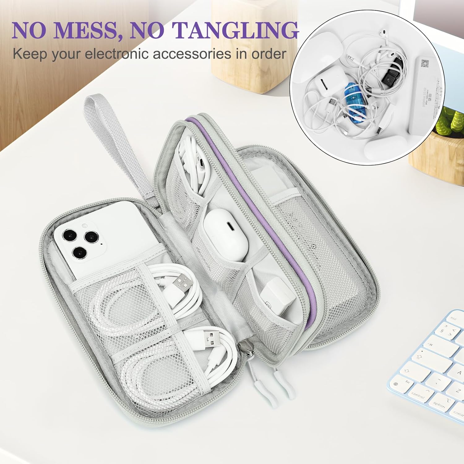 FYY Electronic Organizer, Travel Cable Organizer Bag Pouch Electronic Accessories Carry Case Portable Waterproof Double Layers All-in-One Storage Bag for Cable, Cord, Charger, Phone,-Light Purple