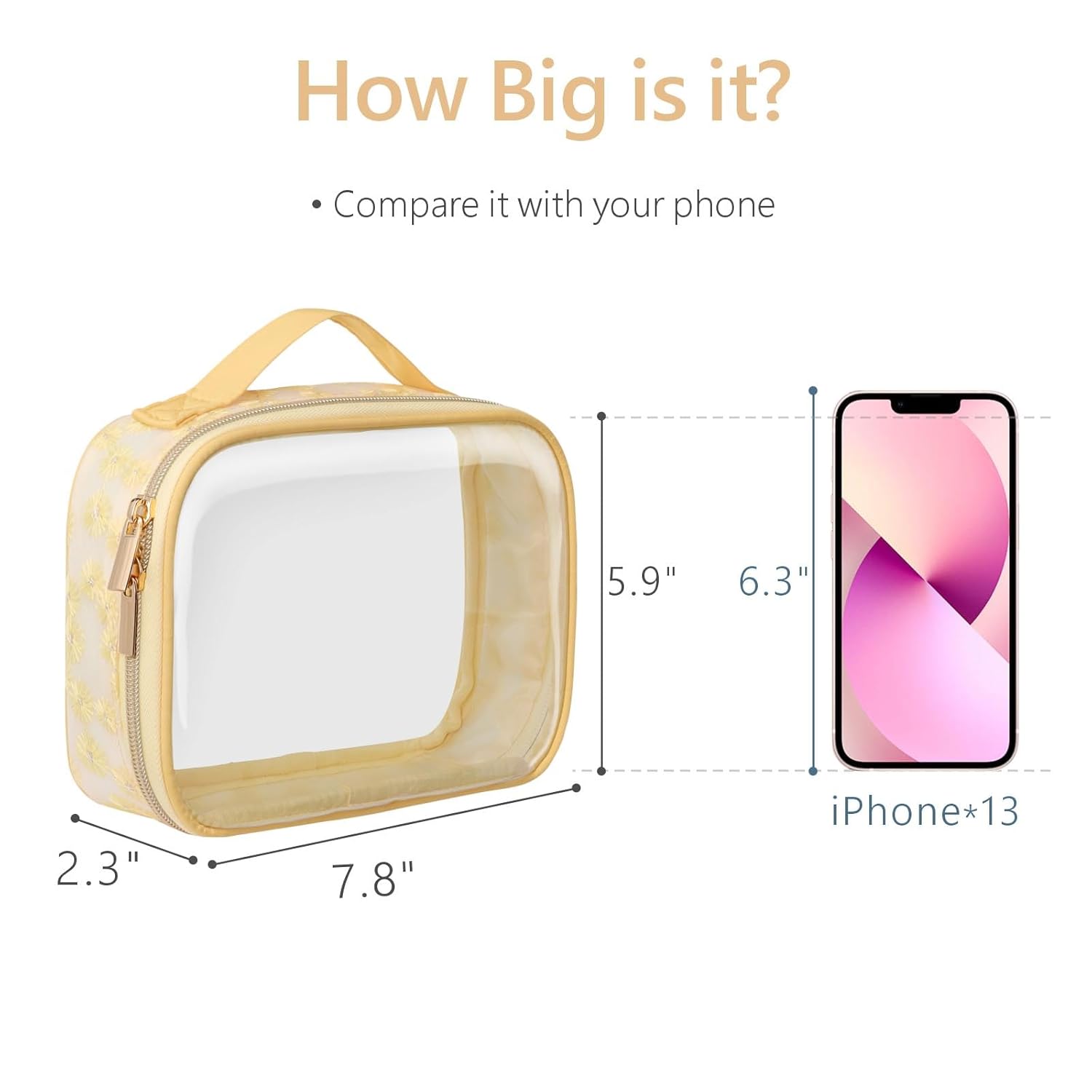 - TSA-approved & hassle-free security checks: This medium clear makeup bag measures 7.8 x 2.3 x 5.9 inches, perfectly complying with TSA’s 3-1-1 liquids rule and breeze through airport security without unpacking