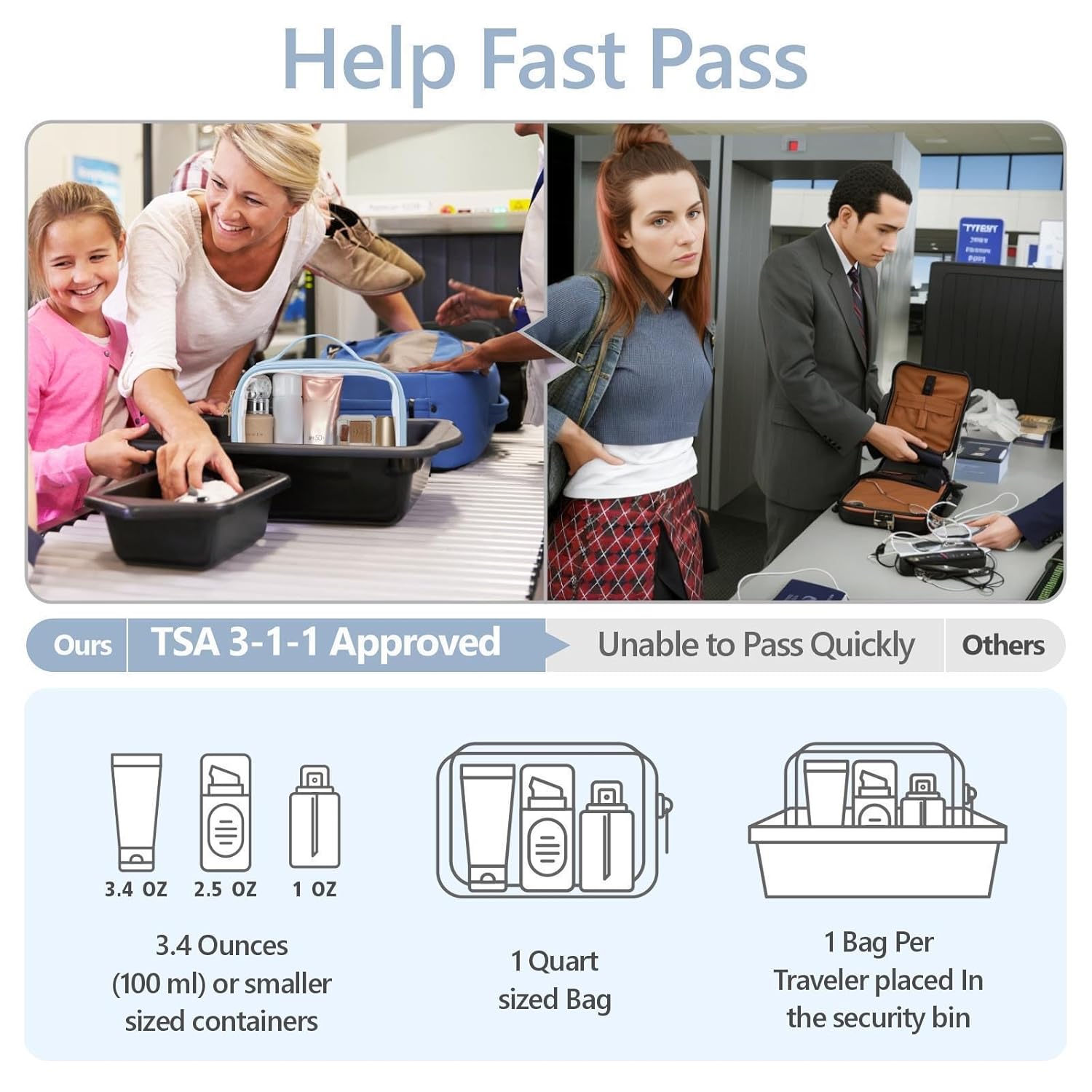 - 2024 Upgrade Style, Lace Fabric: The binding is a fashionable and exquisite Lace fabric, which is ahead of most styles on the market. Several pack clear travel bags perfectly store the travel bottles for toiletries, travel size toiletries kit, and other travel essentials