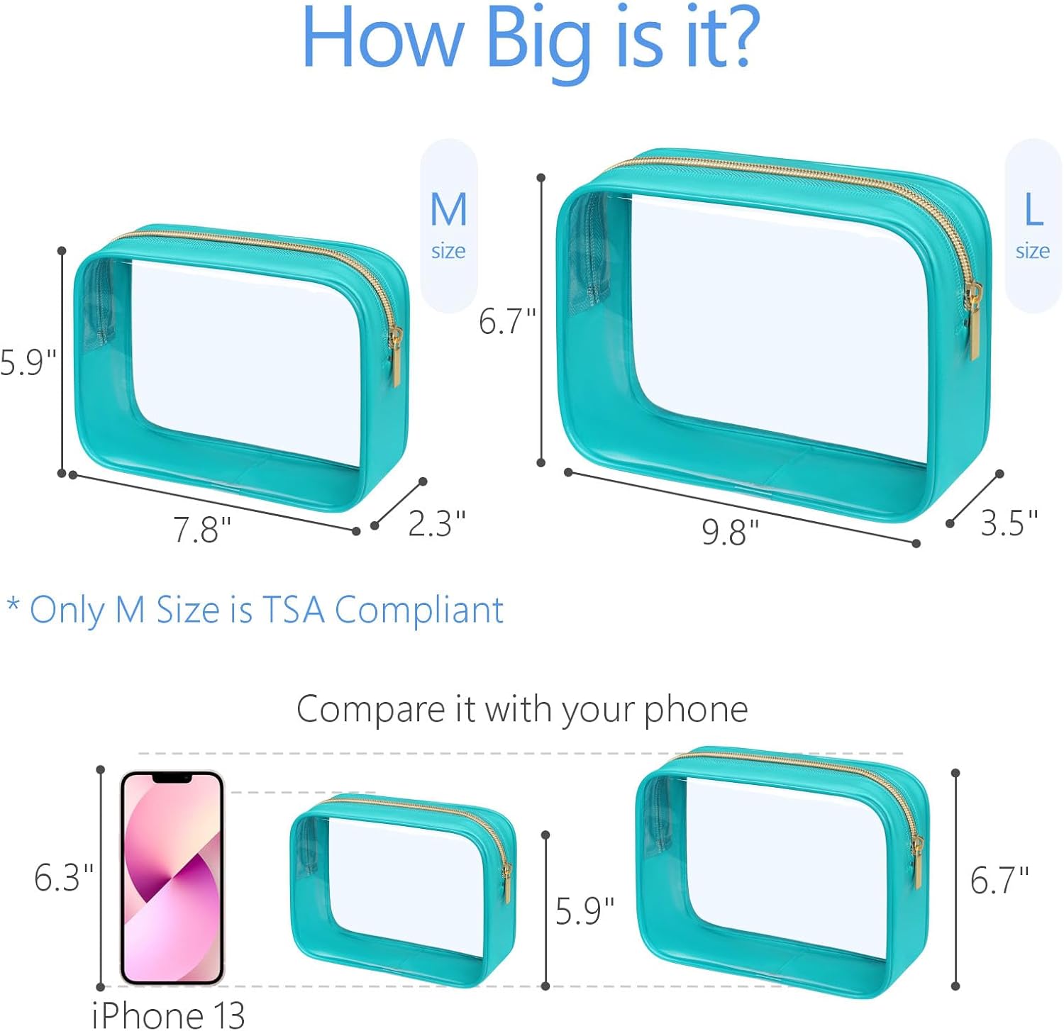 PACKISM Clear Makeup Bag, 2 Pack Upgrade Color-Edged TSA Approved Toiletry Bag, Clear Toiletry Bag For Traveling Fits Various Storage Needs, Turquoise (2 Sizes)