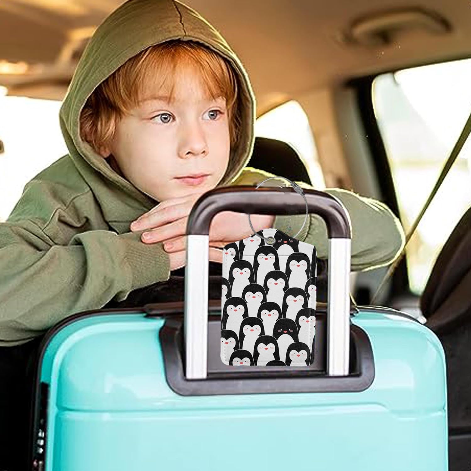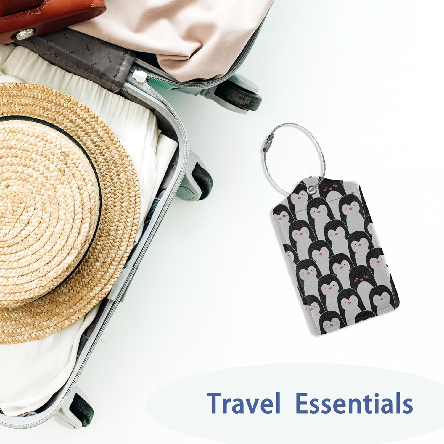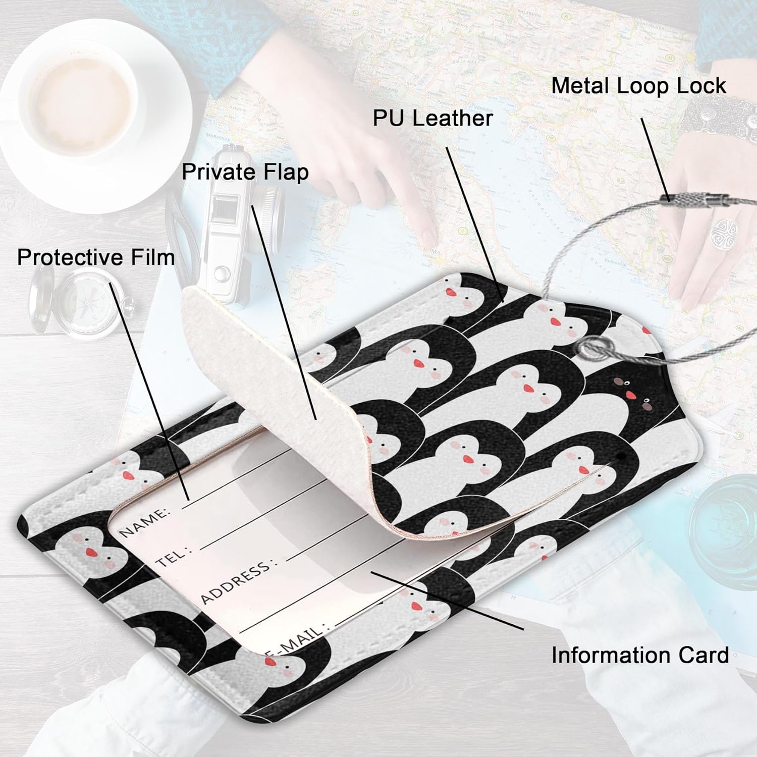2Pcs Luggage Tag for Suitcase Penguin Animals Cute Luggage Tag with Privacy Flap & Name ID Label & Metal Loop, Travel Suitcase Tags for Women