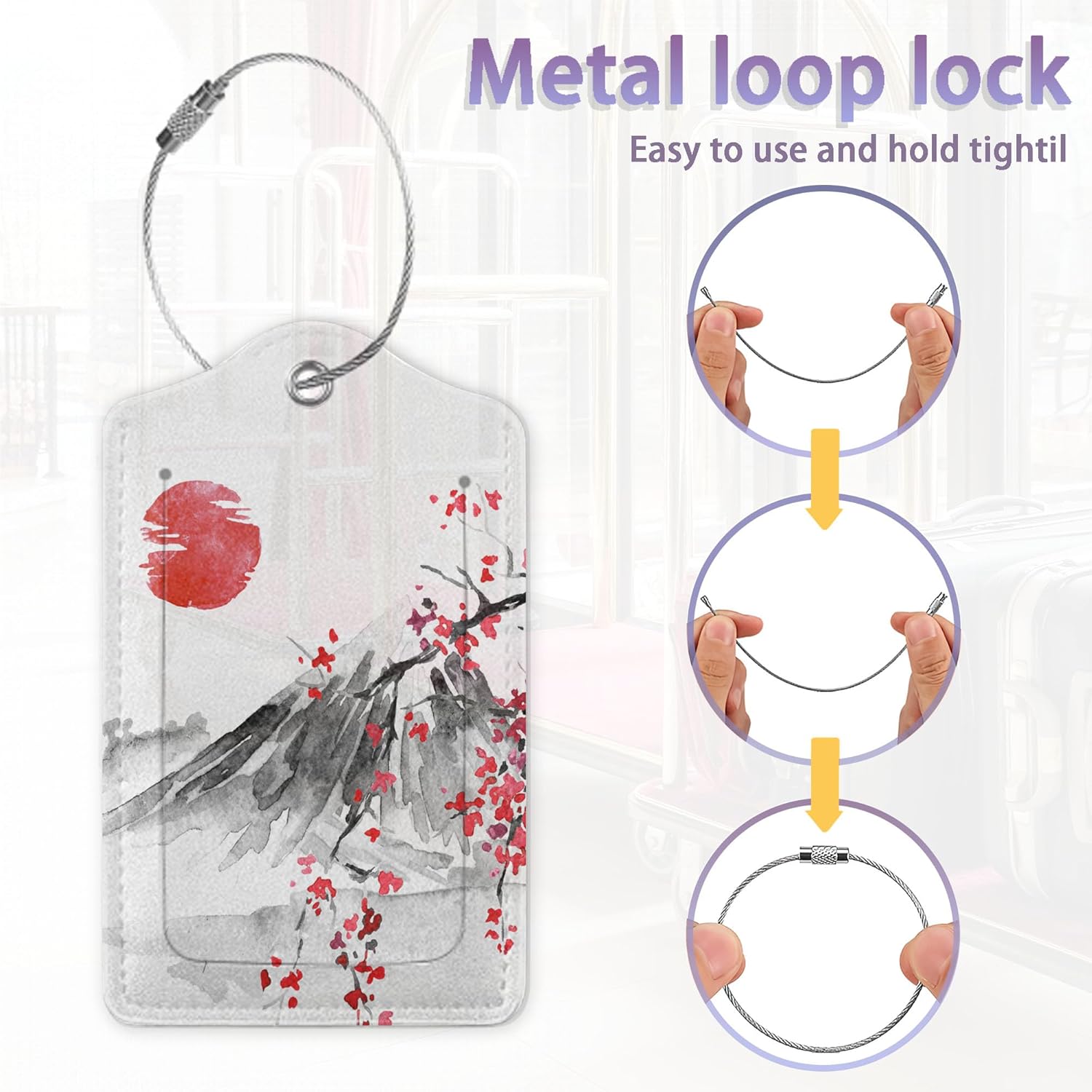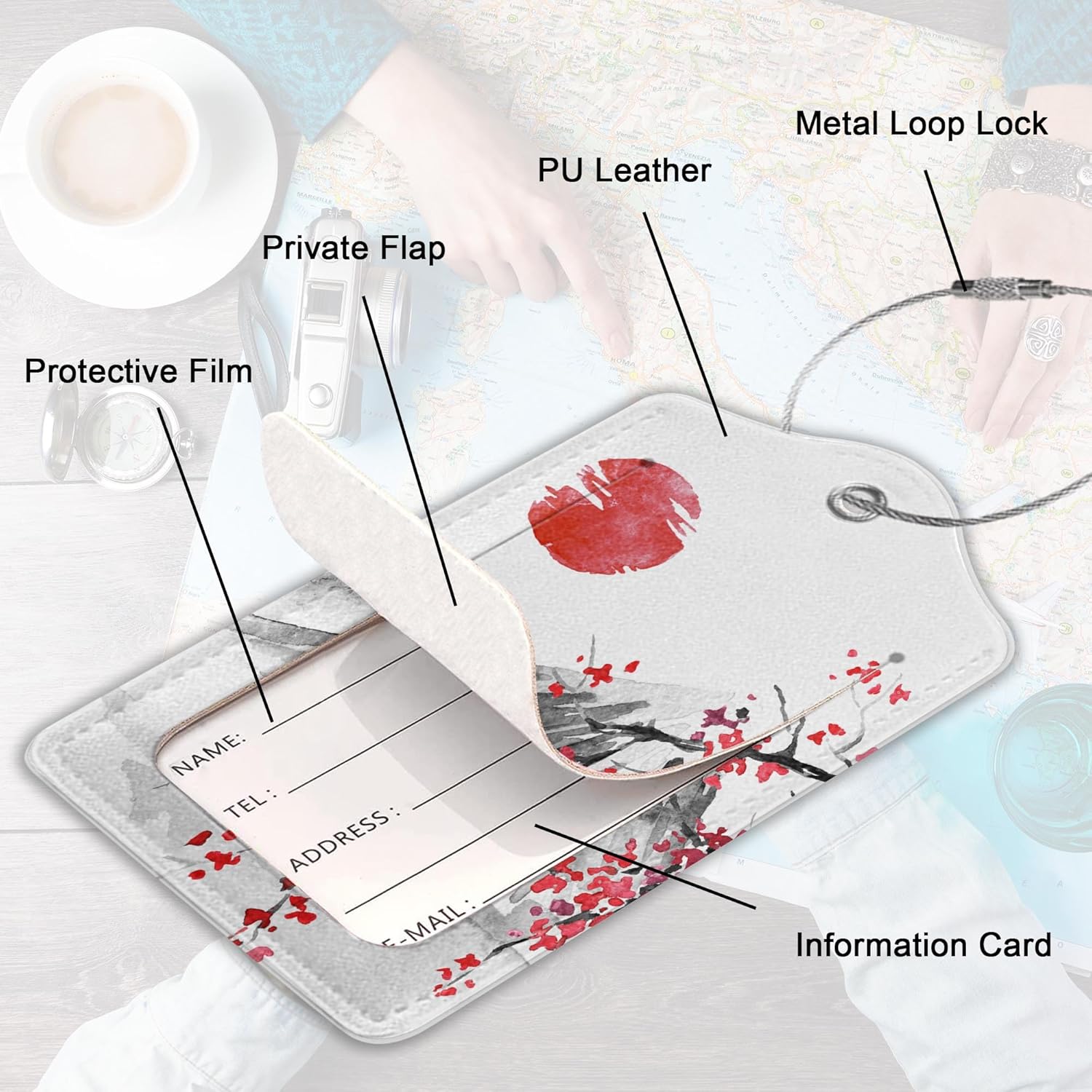 2Pcs Luggage Tag for Suitcase Japanese Cherry Blossom Cute Suitcase Tag with Privacy Flap & Name ID Label & Metal Loop,Travel Bag Luggage Tags for Women