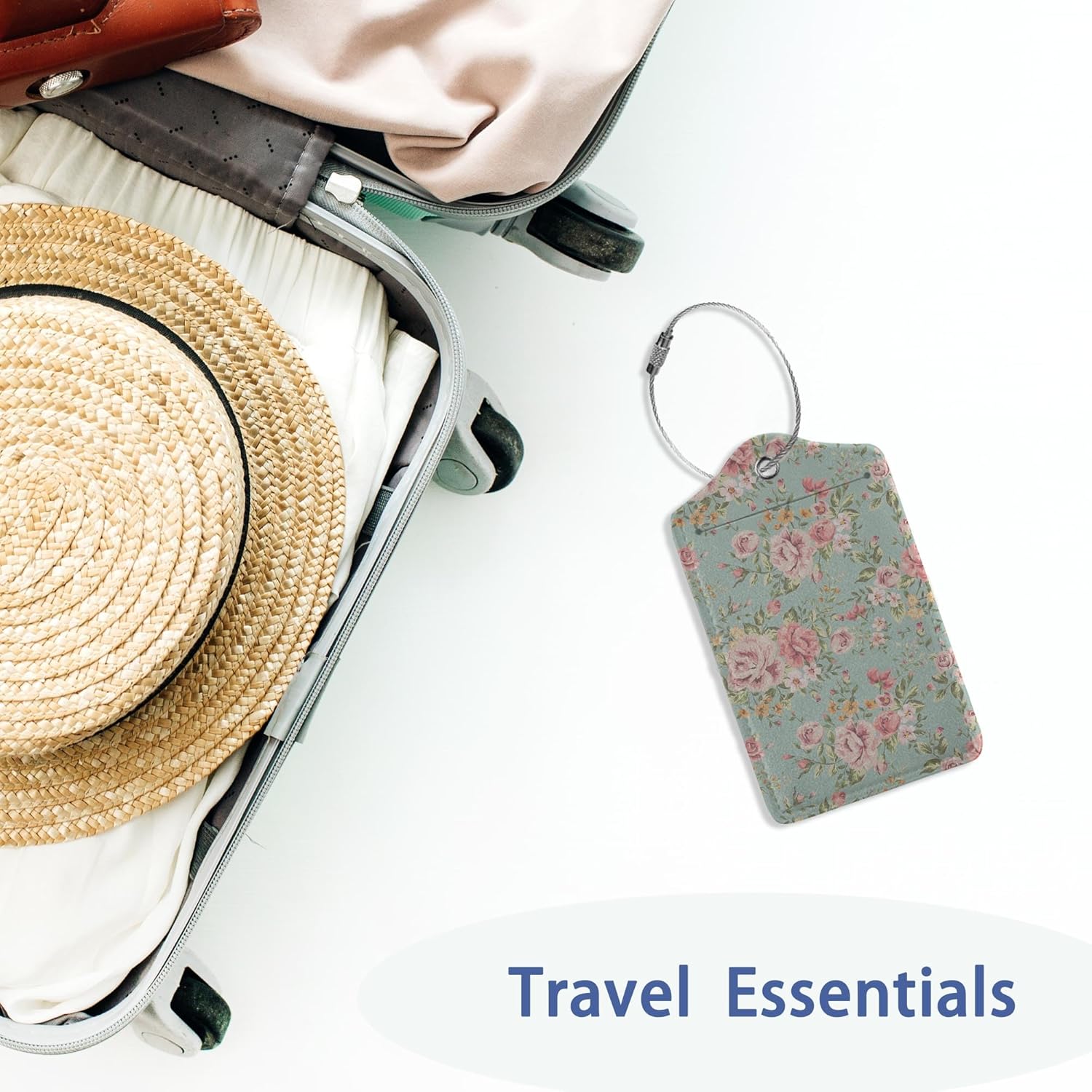 2Pcs Luggage Tag for Suitcase Vintage Floral Shabby Chic Pink Rose Cute Suitcase Tag with Privacy Flap & Name ID Label & Metal Loop,Travel Bag Luggage Tags for Women