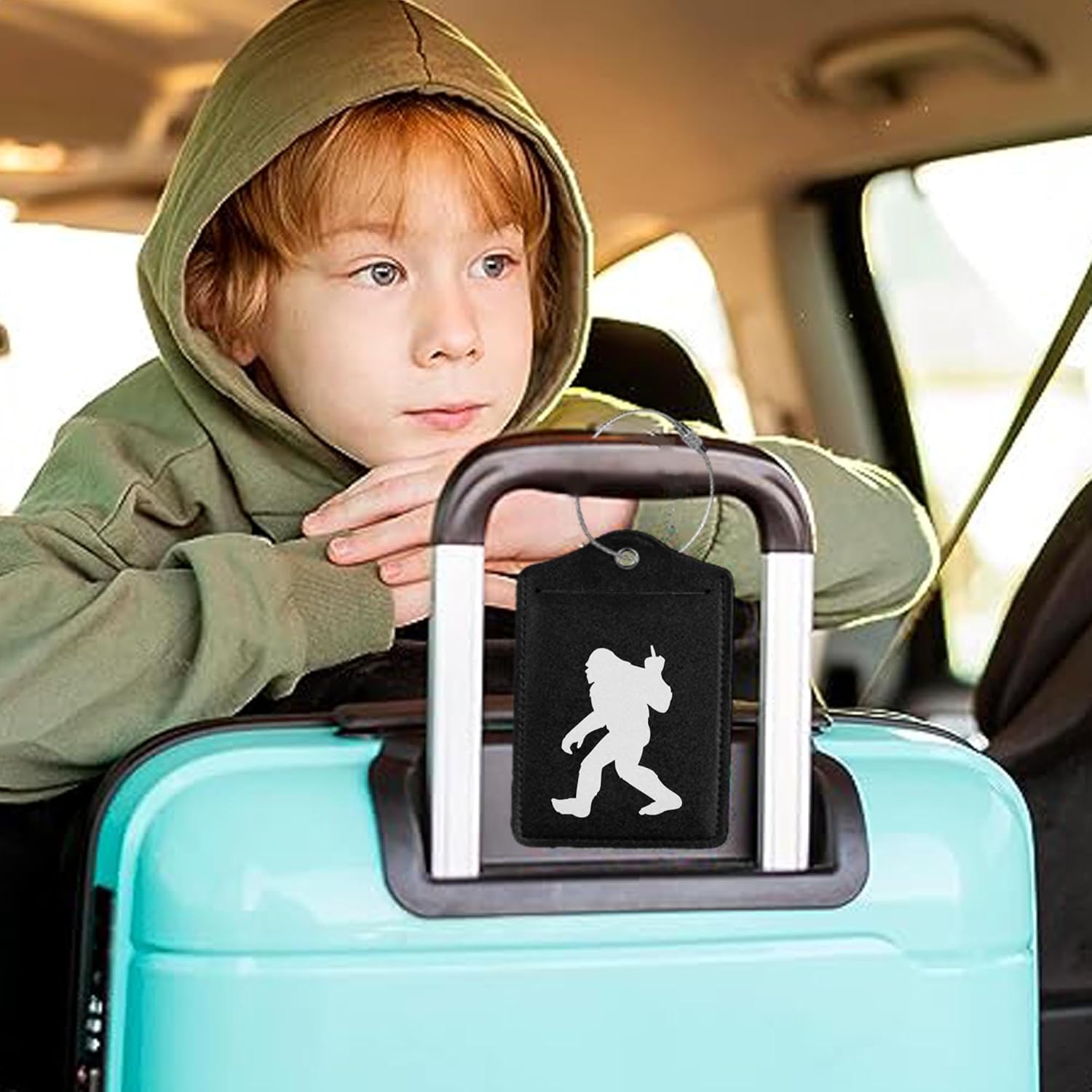 2Pcs Luggage Tag for Suitcase Black Sasquatch Cute Luggage Tag with Privacy Flap & Name ID Label & Metal Loop,Travel Suitcase Tags for Women