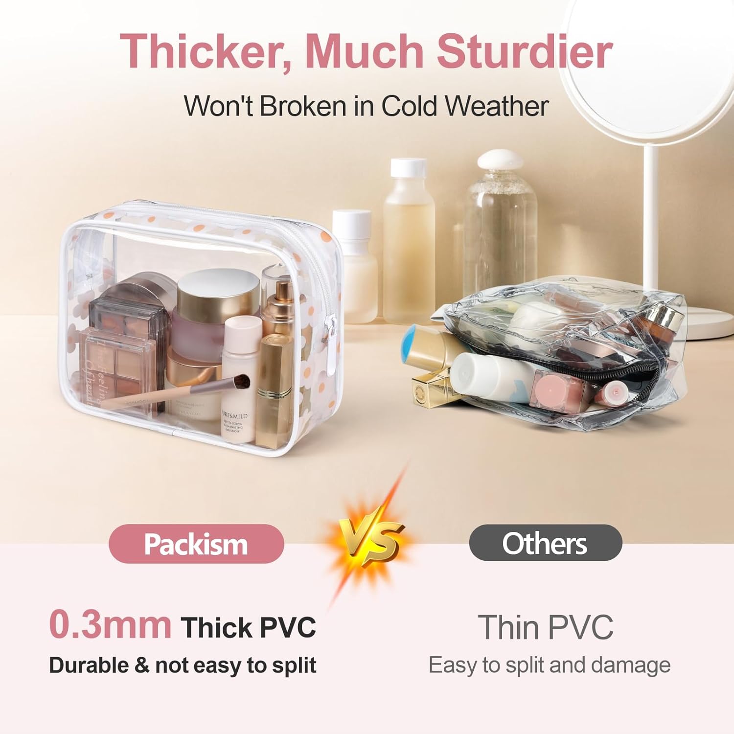 PACKISM TSA Approved Toiletry Bag - White Flower Print Clear Makeup Bag, Suitable for Gifts, with Supporting Frame, Perfect Valentines Day Gifts for Her, Thick No Smell