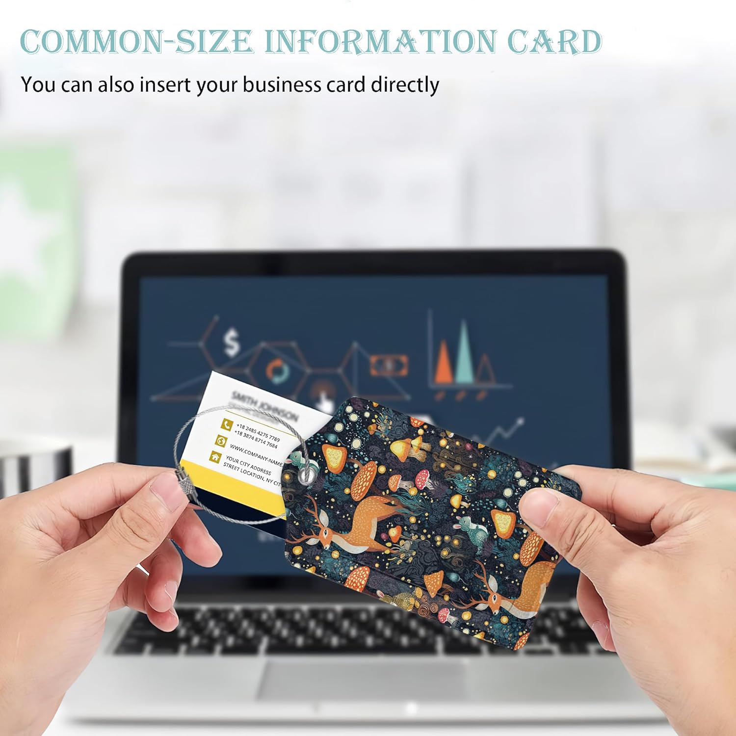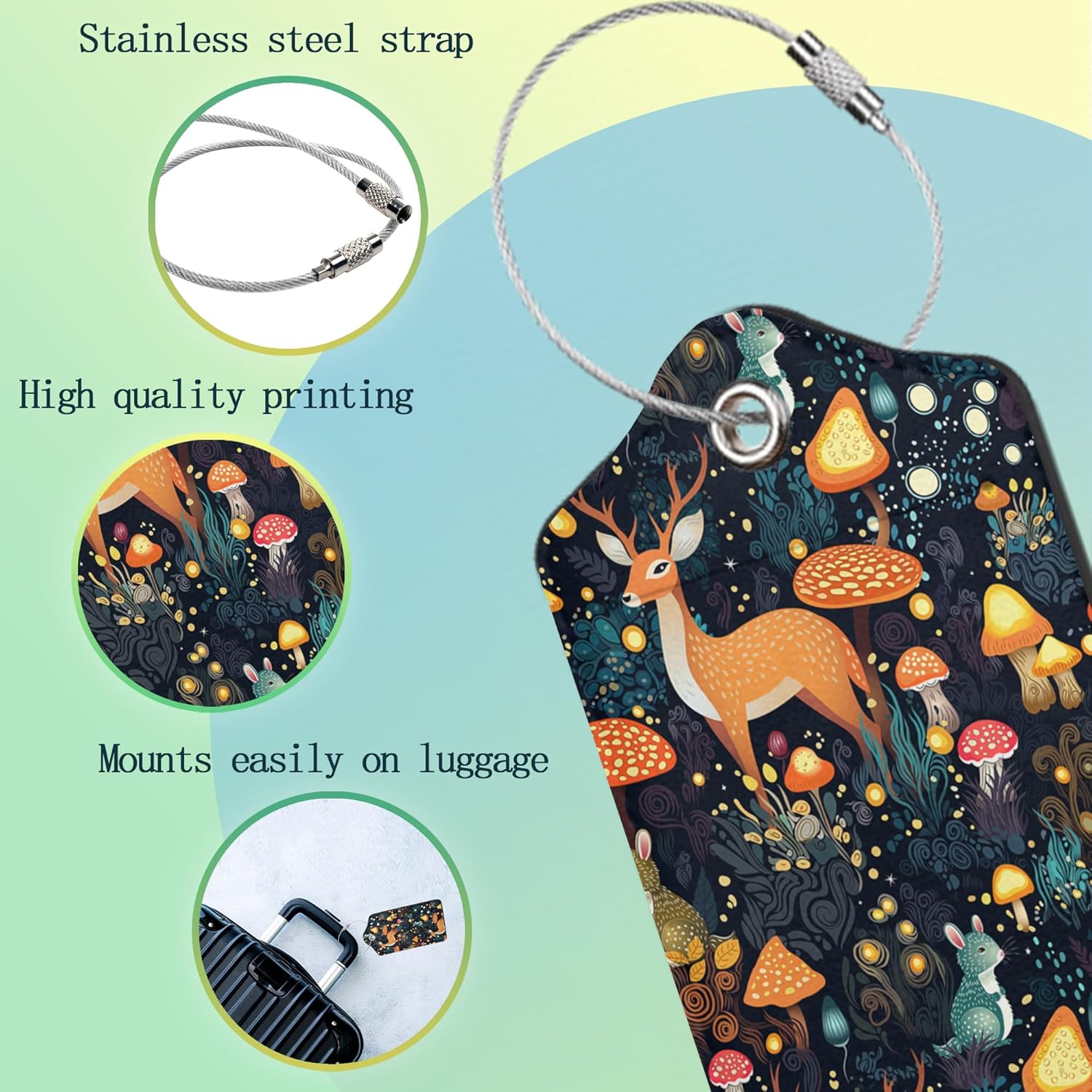 2 Pack Mushrooms Luggage Tag for Suitcases Deer Forest Animal PU Leather Bag Travel Suitcase ID Identifier Baggage Tags for Women Men Travel