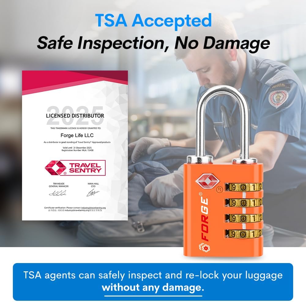 - TSA Approved Luggage Locks: Forge TSA approved locks are recognized by the TSA, with two TSA logos on the front and back of the lock, making them hassle-free for airport security inspections. Forge travel locks can be used on a wide variety of items besides suitcases or luggage. These locks can be used on a toolbox, pelican case, briefcase, gym locker, purse, backpack or laptop bag.