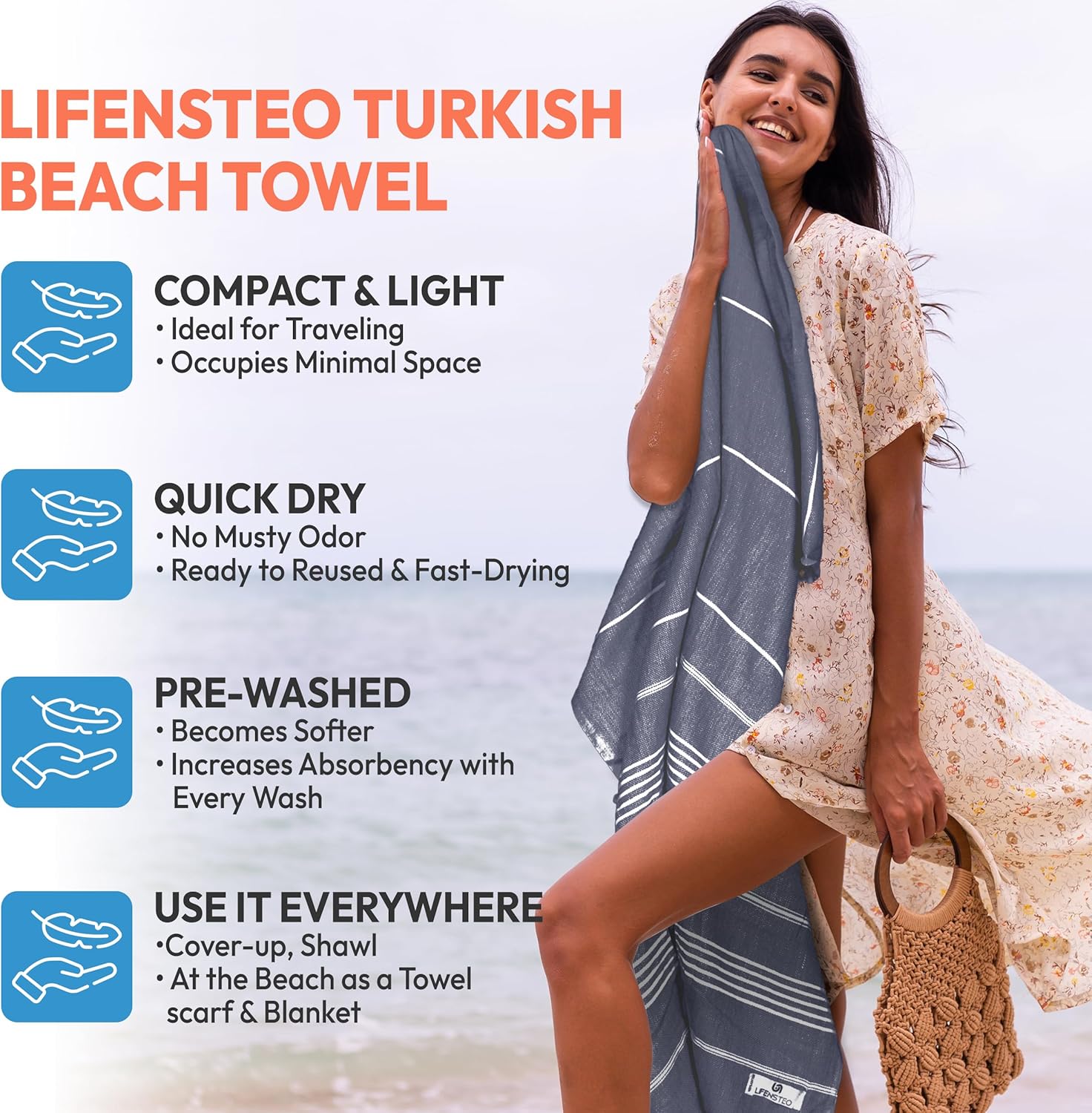 - Quick-Drying & Lightweight: LIFENSTEO Towels Designed for beach and personal use, these sandproof Beach towels oversized have a thin and lightweight structure, ensuring quick & Fast drying under the sun, making them perfect for seaside activities. Easily stack in your package, so ditch your heavy sand-covered towel and streamline your summer.