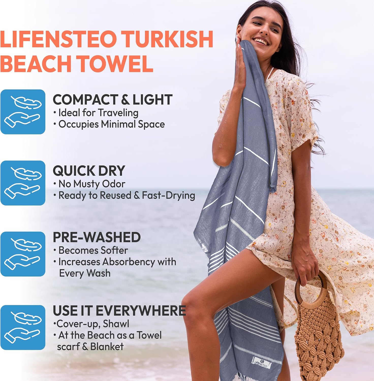 - Quick-Drying & Lightweight: LIFENSTEO Towels Designed for beach and personal use, these sandproof Beach towels oversized have a thin and lightweight structure, ensuring quick & Fast drying under the sun, making them perfect for seaside activities. Easily stack in your package, so ditch your heavy sand-covered towel and streamline your summer.