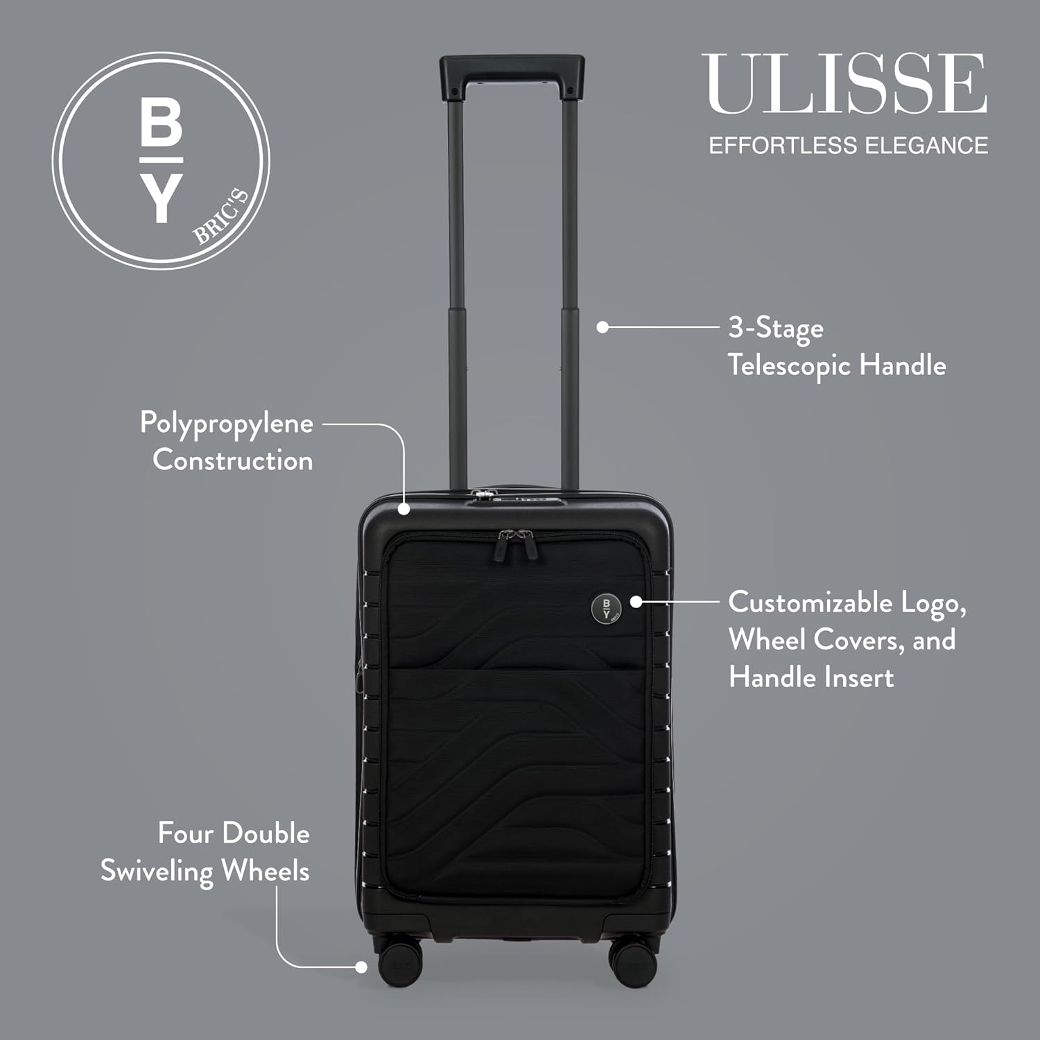 Bric's B|Y Ulisse Spinner Carry-On Suitcase, Lightweight Expandable Hard Shell Luggage with TSA Lock and Smooth 360° Wheels 21 Inch – Nero