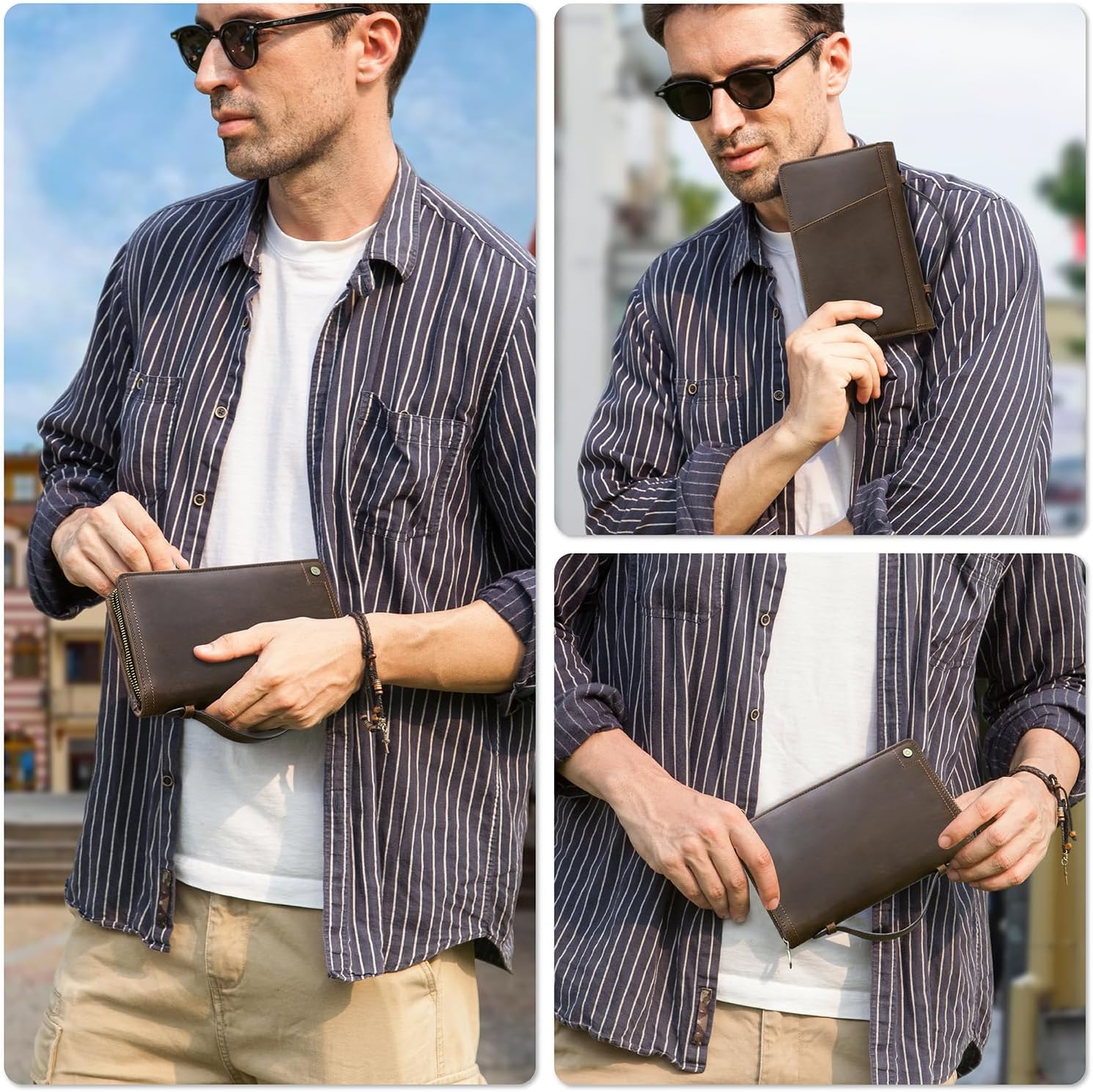 - 💳【Vintage Design, Modern Utility】➯ This handmade craft combines a minimalist vintage design with practicality. Sized at 8.07" x 5.12" x 1.18" with double-layer structure, it's perfect for multiple Passports/Cards/ID/Checks/Banknotes/Phone/Coins/Pen/AirTag. Additional RFID-blocking material provides high protection for credit cards. Offering protection without sacrificing portability!