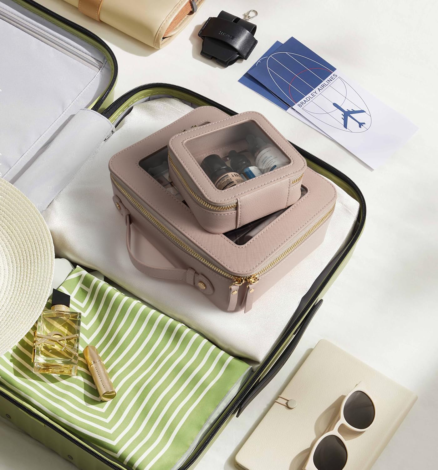 - PREMIUM PU SAFFIANO LEATHER:These travel toiletry bags are made of PU material,durable, and waterproof.Unlike other flimsy and collapsible pvc bags, Together with the beautiful stitches and compact leather zippers, this make up bag is durable for long-lasting use.