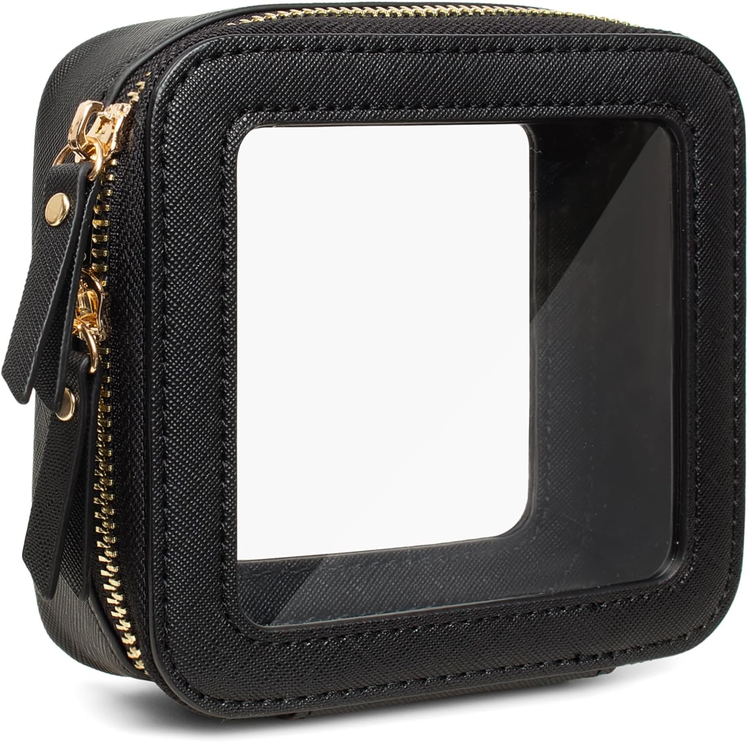 • Small and Clear Design: You will get 1PCS small minimalist boxy shape travel makeup bag which is sleek and minimalistic look for your makeup accessories collection. And is designed with a transparent PVC window,all items are clear at a glance, and you can quickly choose the cosmetics you need.Portable and lightweight Slip it into your purse, backpack, everyday tote or travelling bag for easy access to your must-have items. Size:5.1'' x 4.8''x 2''