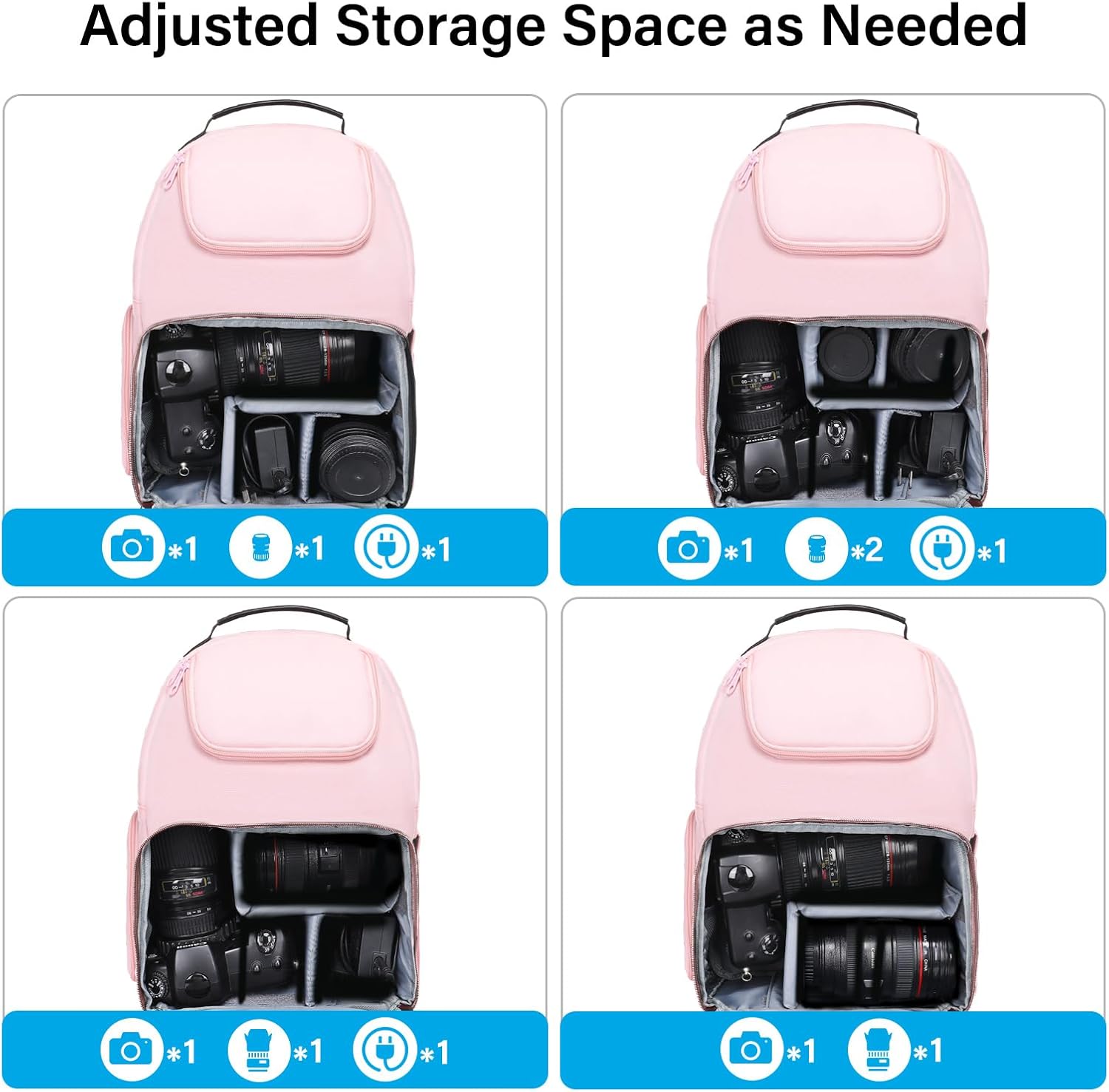 MOSISO Camera Sling Bag, DSLR/SLR/Mirrorless Camera Case Crossbody Photography Backpack with Tripod Holder&Removable Modular Inserts&PU Handle Compatible with Canon/Nikon/Sony, Pink