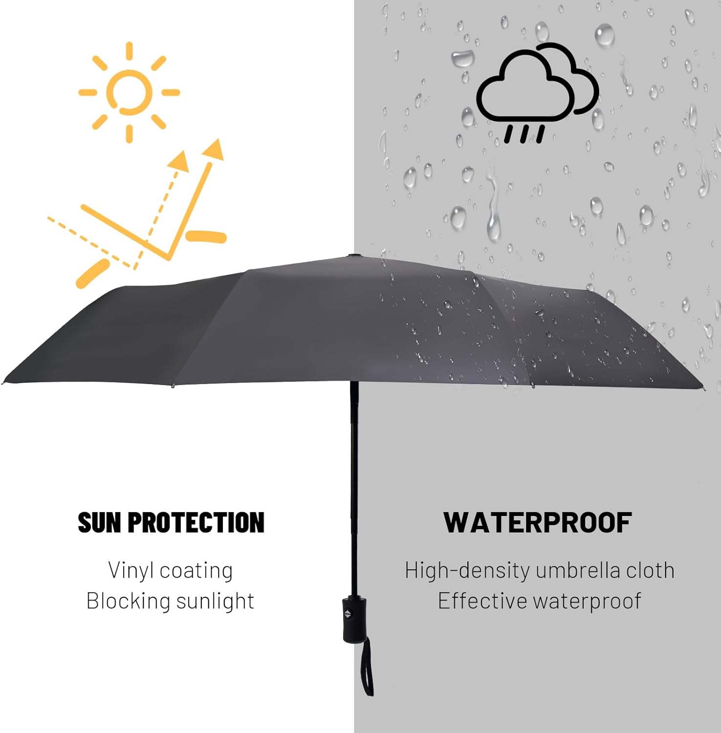 - FULLY AUTOMATIC UMBRELLA: Auto open and close umbrella can handy for quick entry into a car, building or tent. You can quickly open or close the travel umbrella at the press of a button