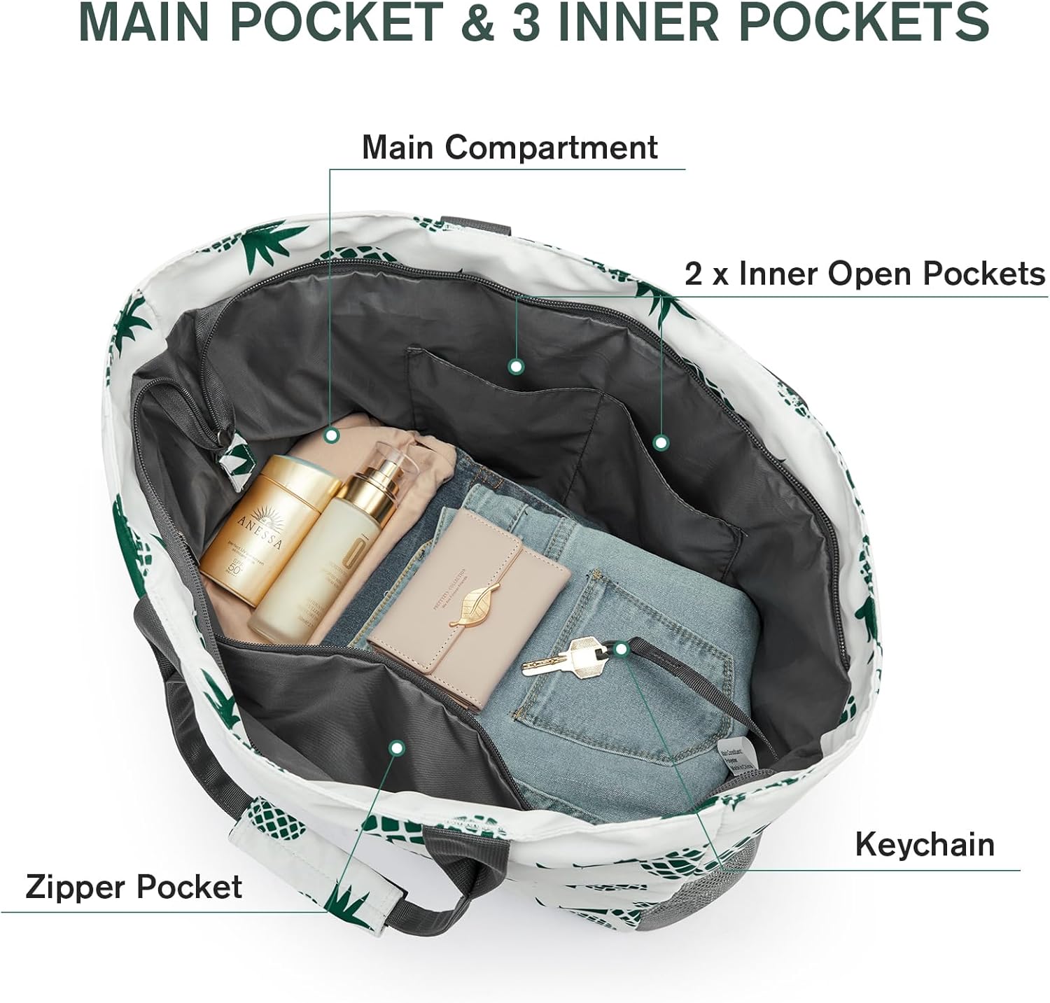 - 【Large Capacity】G4Free trave tote bag stands out for its large size, 21.6"*6.7"*15.4". Extra gift small purse. It can easily accommodate all the necessary beach essentials for a family of four. And This is a 2-in-1 design bag. The large tote bag can be folded into a small bag, which is very convenient to carry.