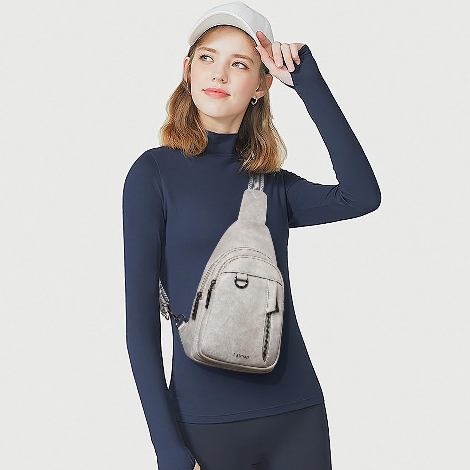 - Premium Material: Our new cross body bag for woman is made of premium faux leather, the chest pack's body and shoulder straps are reinforced with sturdy stitching for durability.An earphone hole on the back pocket enables you to enjoy music easily.