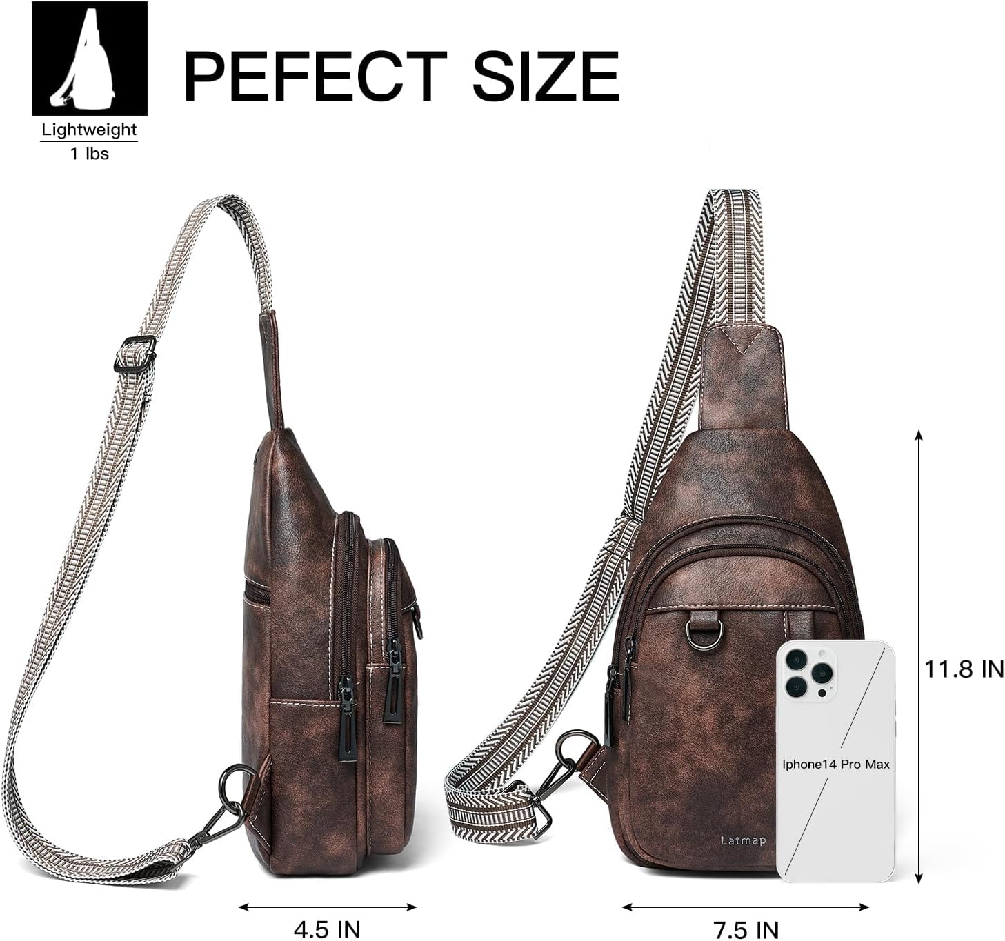 - Premium Material: Our new cross body bag for woman is made of premium faux leather, the chest pack's body and shoulder straps are reinforced with sturdy stitching for durability.An earphone hole on the back pocket enables you to enjoy music easily.