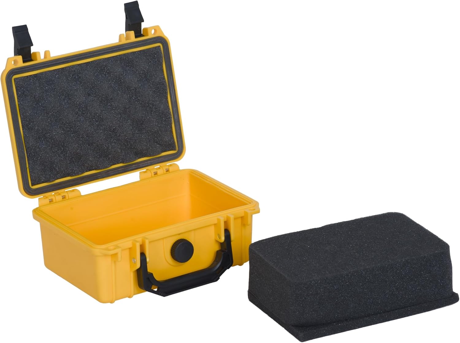 MEIJIA IP67 waterproof hard compact case,Customizable Fit Foam,8.12”x6.56”x 3.56”,Fit Use of Drones, Cameras,Equipments,lens (Yellow)