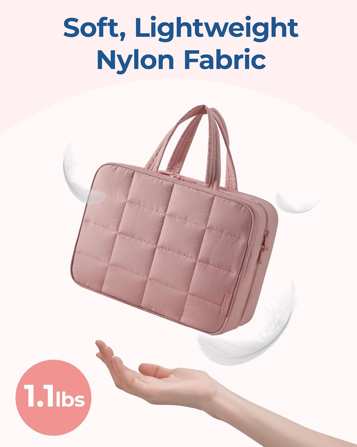 - ๐๐ฎ๐๐๐ฒ ๐๐๐ญ๐๐ซ๐ข๐๐ฅ๐ฌ: Hanging Toiletry Bag is made of puffy fabric and weighs only 1.1lbs-1.5 lbs. Super soft, lightweight nylon fabric provides all-day carry comfort