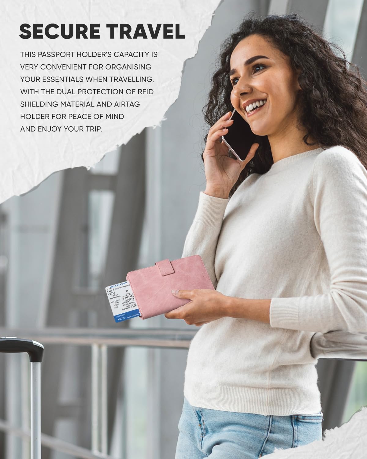 VULKIT Passport Holder with Airtag Holder RFID Blocking Passport Wallet Travel Leather Passport for Women(Pink)