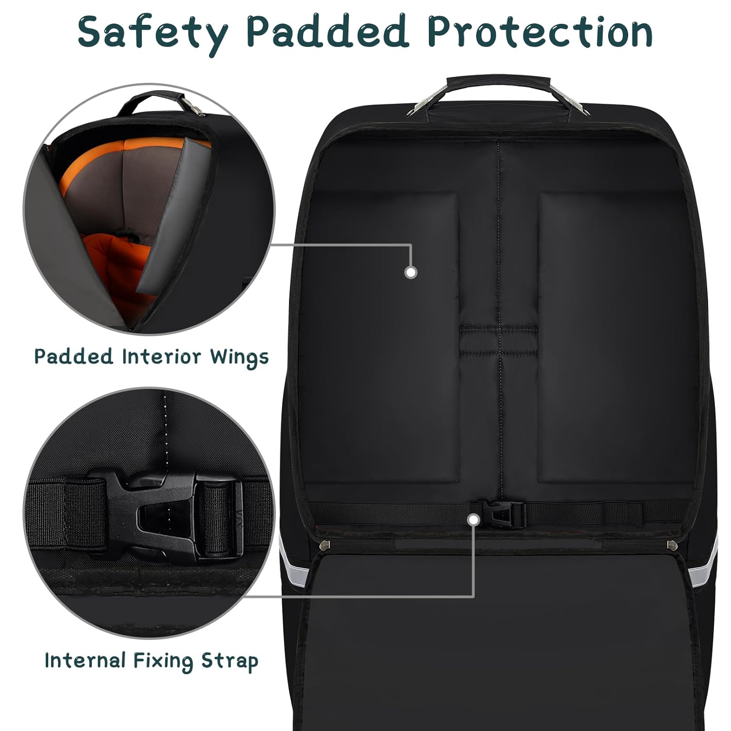 Car Seat Travel Bag,Padded Car Seats Backpack with Steel Cable Handle and Reflective Stripes, Large Durable Carseat Carrier Bag,Airport Gate Check Bag,Infant Seat Travel Bag with Shoulder Strap,Black