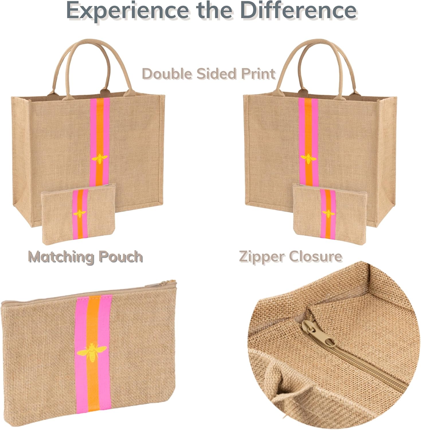 - Pack and Go: Our burlap tote keeps your items organized. Featuring an interior pocket for keys, sunglasses, or a phone. BONUS a matching mini bag to use as a beach purse, beach clutch, makeup bag, beach wallet, or store a wet bathing suit. Perfect for keeping your valuables secure or using it as a standalone accessory.