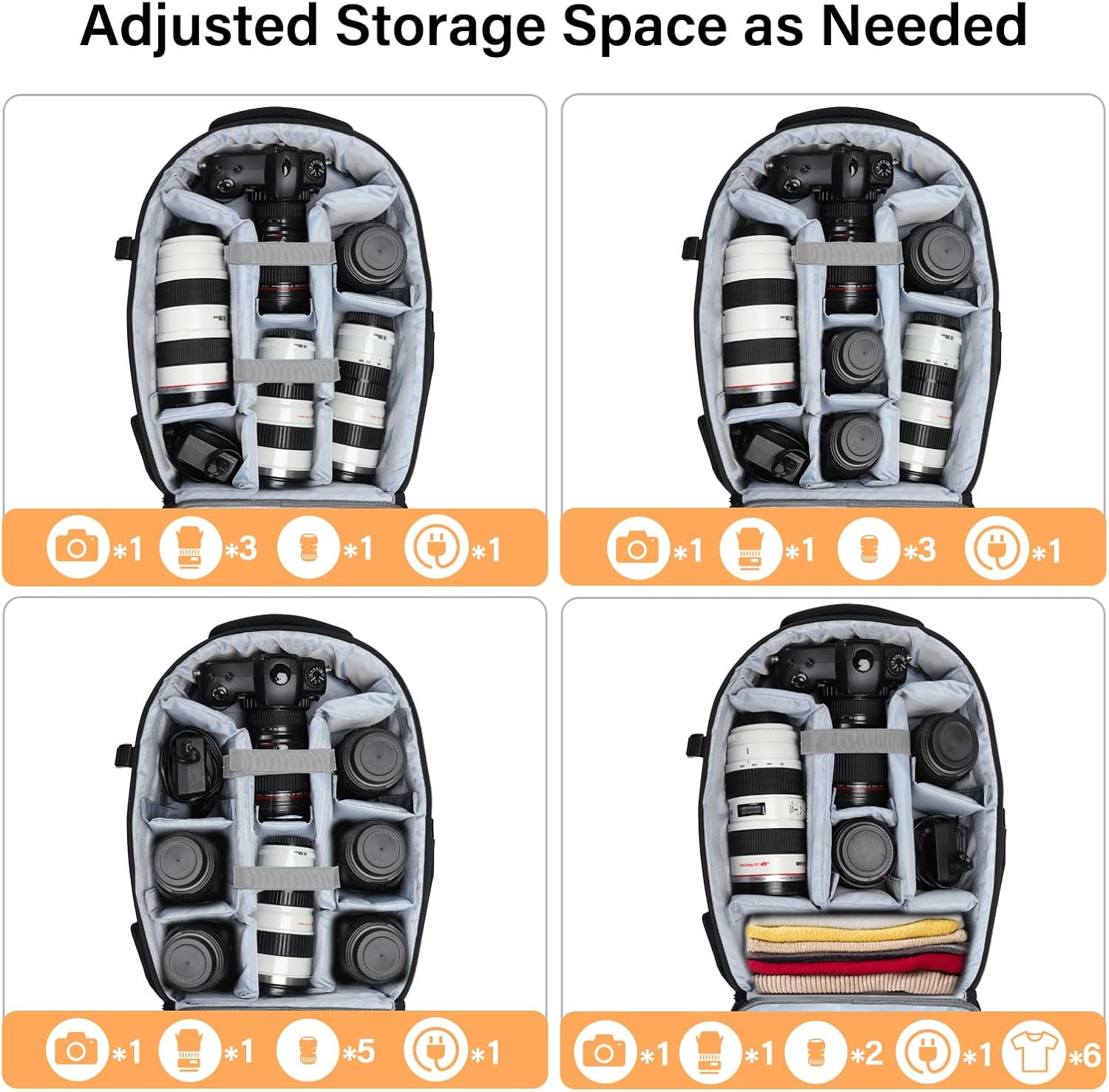 - This multifunctional camera bag is professionally designed for DSLR / SLR / Mirrorless cameras of different brands. Compatible with Nikon D5600, D5300, D3500, D3400, D3300, D3200; compatible with Canon EOS Rebel T6, T6i, SL2 and other standard-size DSLRs. Also designed to be compatible with DJI Mavic Drone(Mavic 2/Air/Pro).