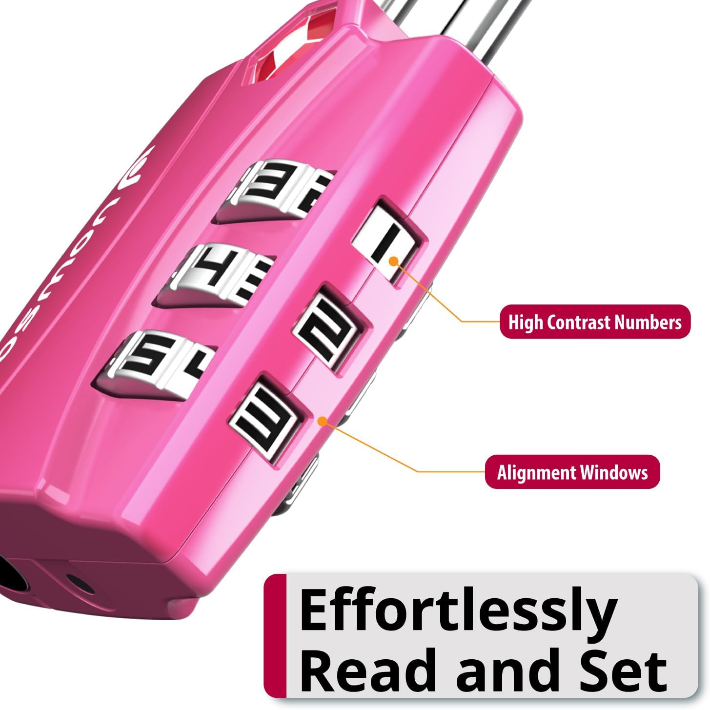 Fosmon TSA Approved Pink Locks for Luggage. Cute Locker Suitcase Lock with Open Alert Indicator, 3 Digit Combination Padlock with Alloy Body for Travel, Backpack Zipper Anti Theft, Gym, Women- 2 Pack