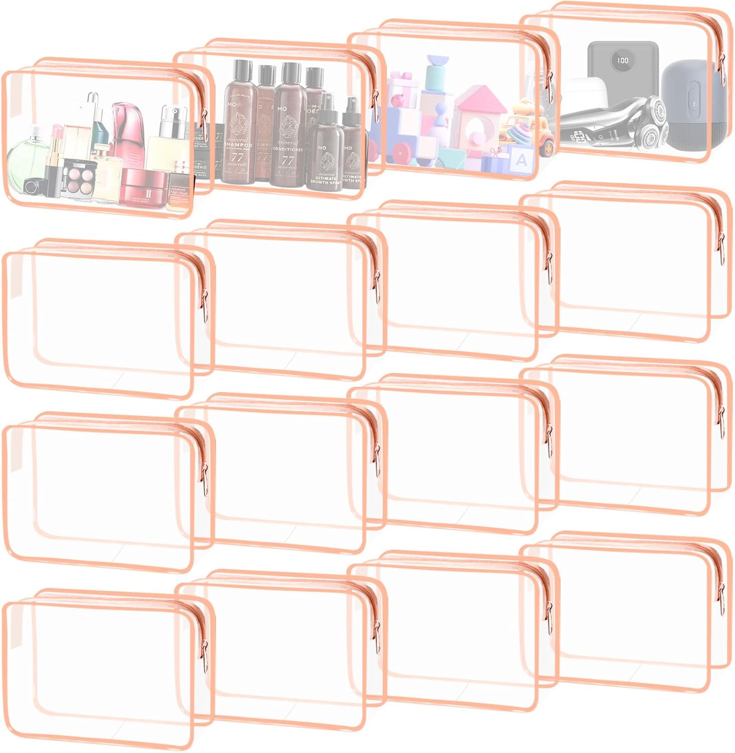 16 Pieces Clear Cosmetic Bags, Large Transparent Makeup Bags, TSA Approved Toiletry Bag for Travel, PVC Waterproof Clear Pouch with Zipper Make Up Bag for Women and Men Traveling (Rose Pink-L)