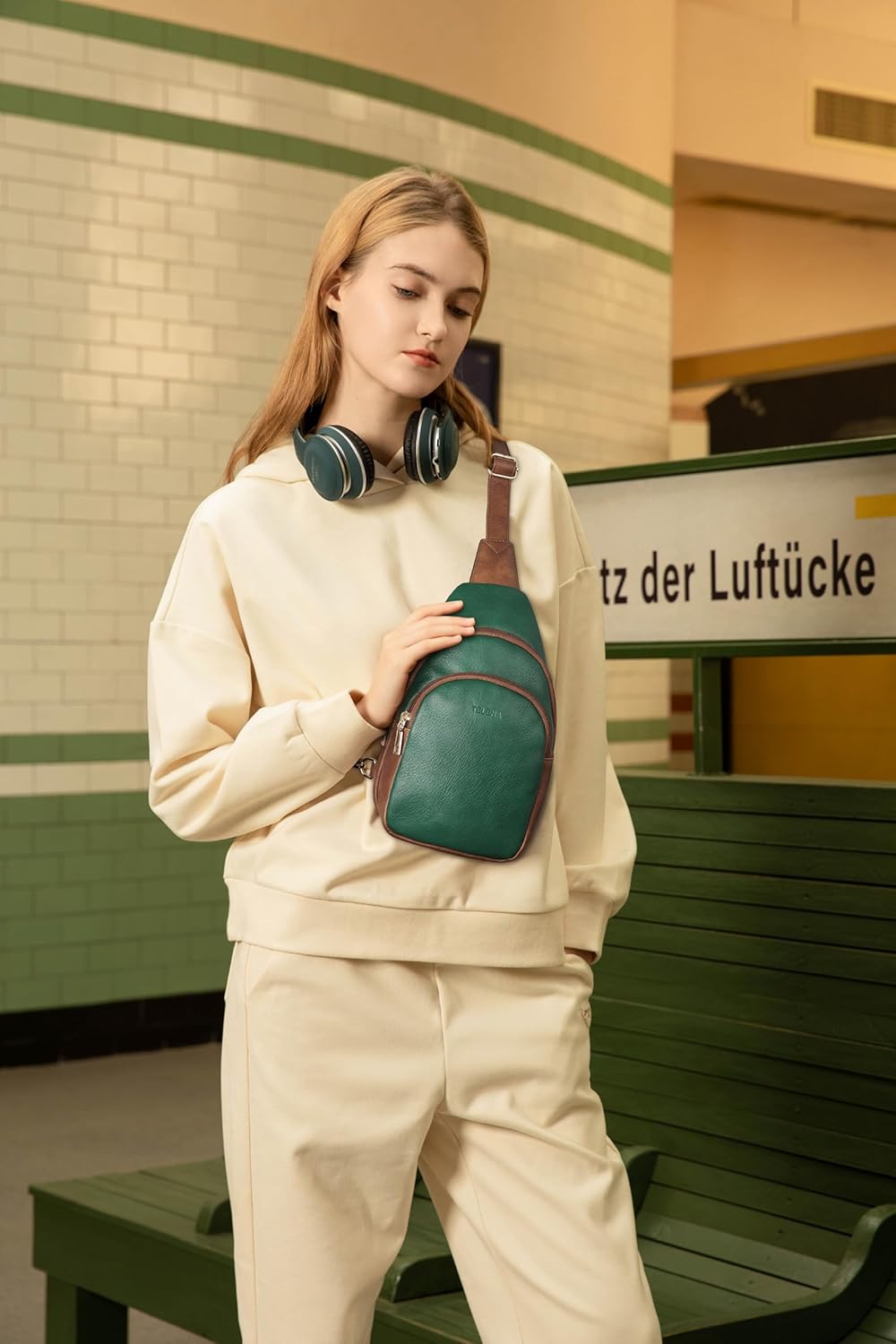 Telena Small Sling Bag for Women Leather Crossbody Fanny Packs Chest Bag for Women