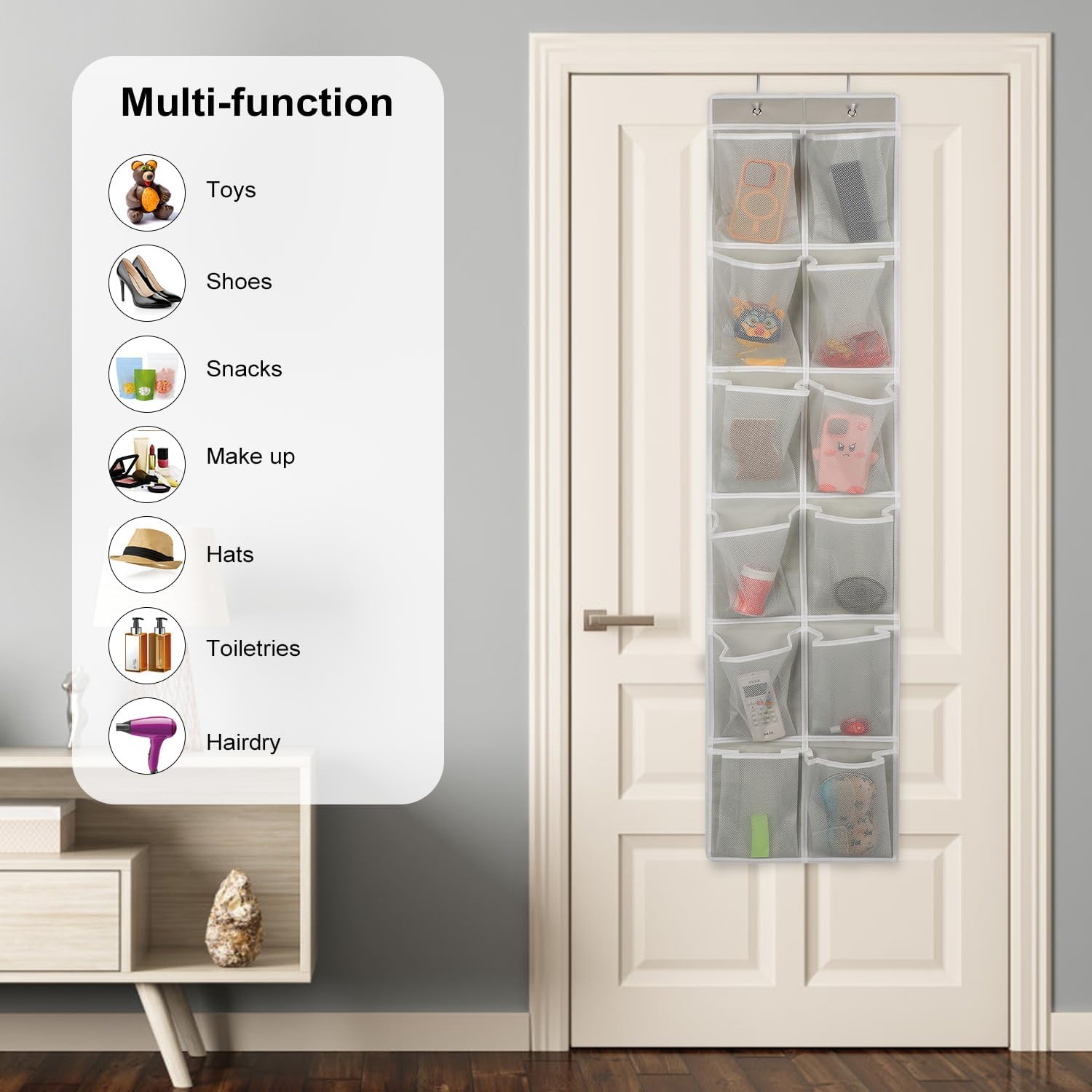 Over the Door 12 Pocket Hanging Shoe Organizer, Gray