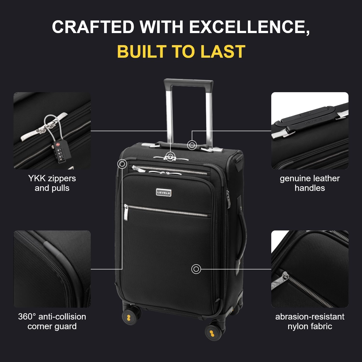 - Exquisite and Durable Design: Our LEVEL8 carry on luggage is made with high-quality, durable materials, featuring genuine leather handles on the top and sides. Equipped with YKK zippers and a comprehensive corner protection design, this suitcase is built to last