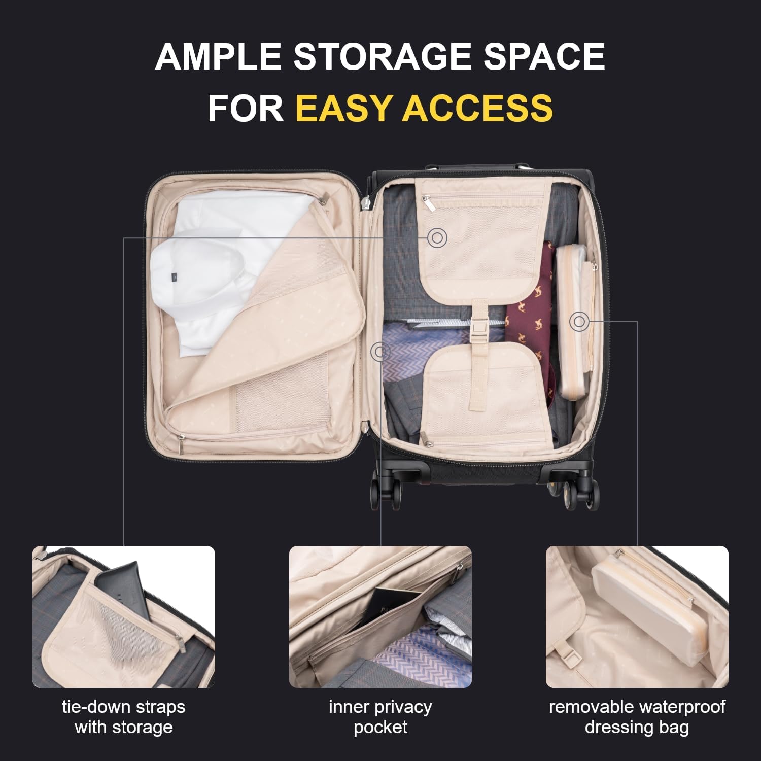 LEVEL8 Carry On Luggage with Compartment, 20 Inch Softside Expandable Travel Rolling Suitcase with Spinner Wheels, Tsa Locks, Men and Women, Black