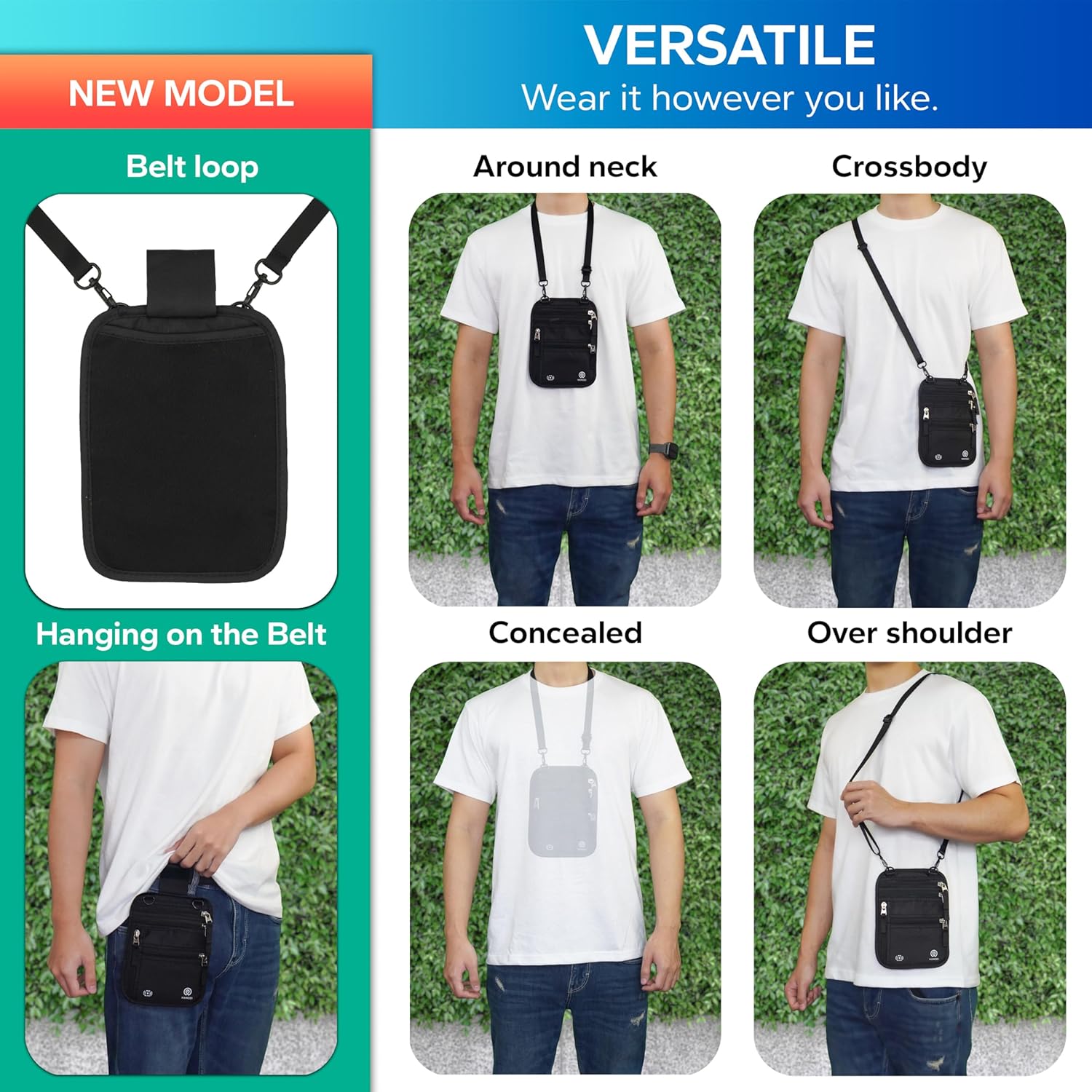 Neck Wallet – Travel Pouch and RFID Blocking Passport Holder for Women and Men, Easy to Conceal Passport Wallet, Slim Travel Wallet to Keep Your Cash, Passport, Cards and Documents Safe (Black)