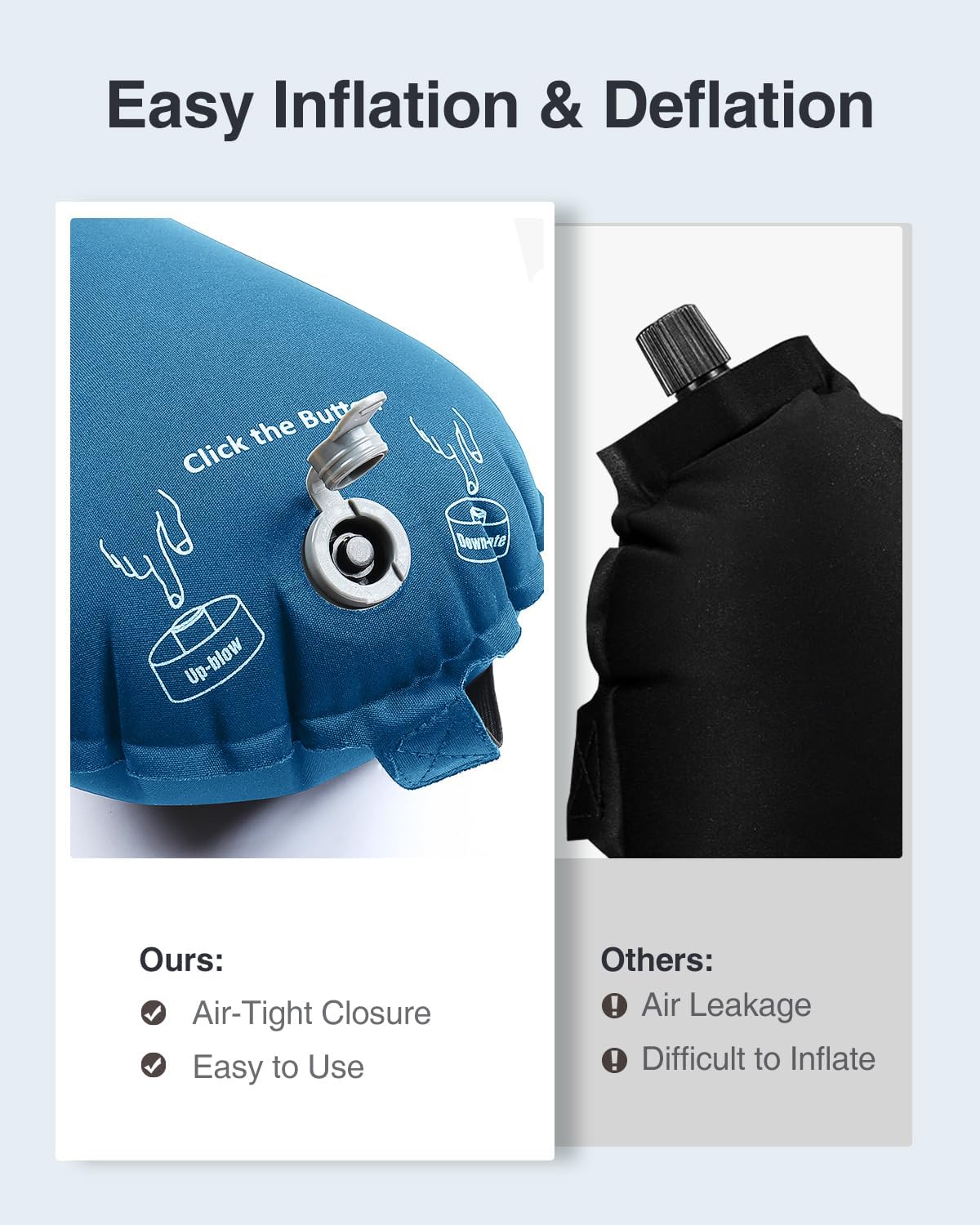 - 【Upgraded Valve Design】: Our inflatable travel pillow uses the Press Type air valve, it will naturally inflate to an unsaturated state in 1~2 minutes by pressing the button, and its inflatable design allows you to customize the firmness to your desired level, this ensures that you get the perfect amount of support and comfort for your specific needs.