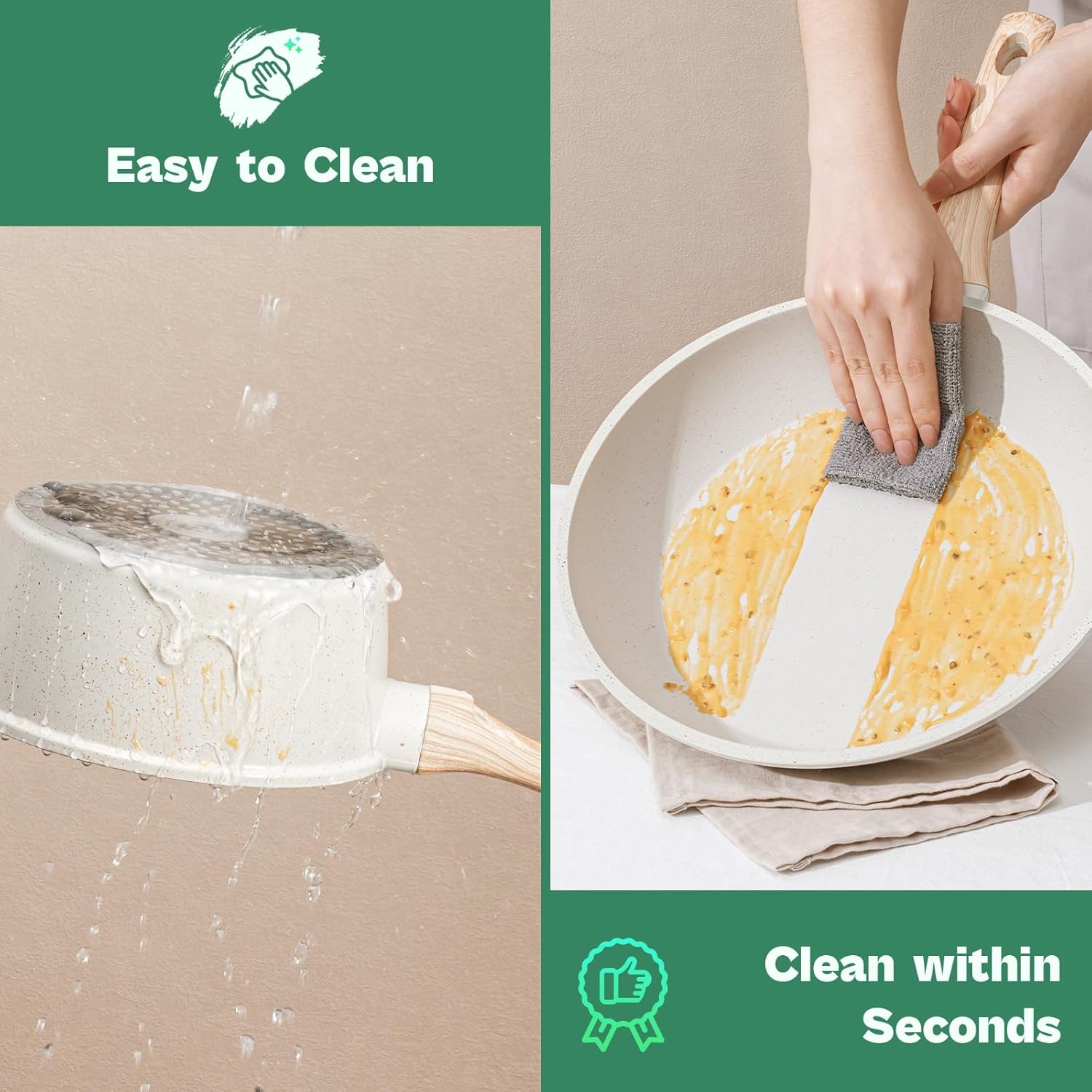 - Safe, Non-Toxic Cookware You Can Trust - Designed for healthier, worry-free cooking. Crafted with a durable granite non-stick coating free from harmful chemicals like PFOS, PFOA, lead, and cadmium, this pots and pans set ensures cooking healthy every meals.