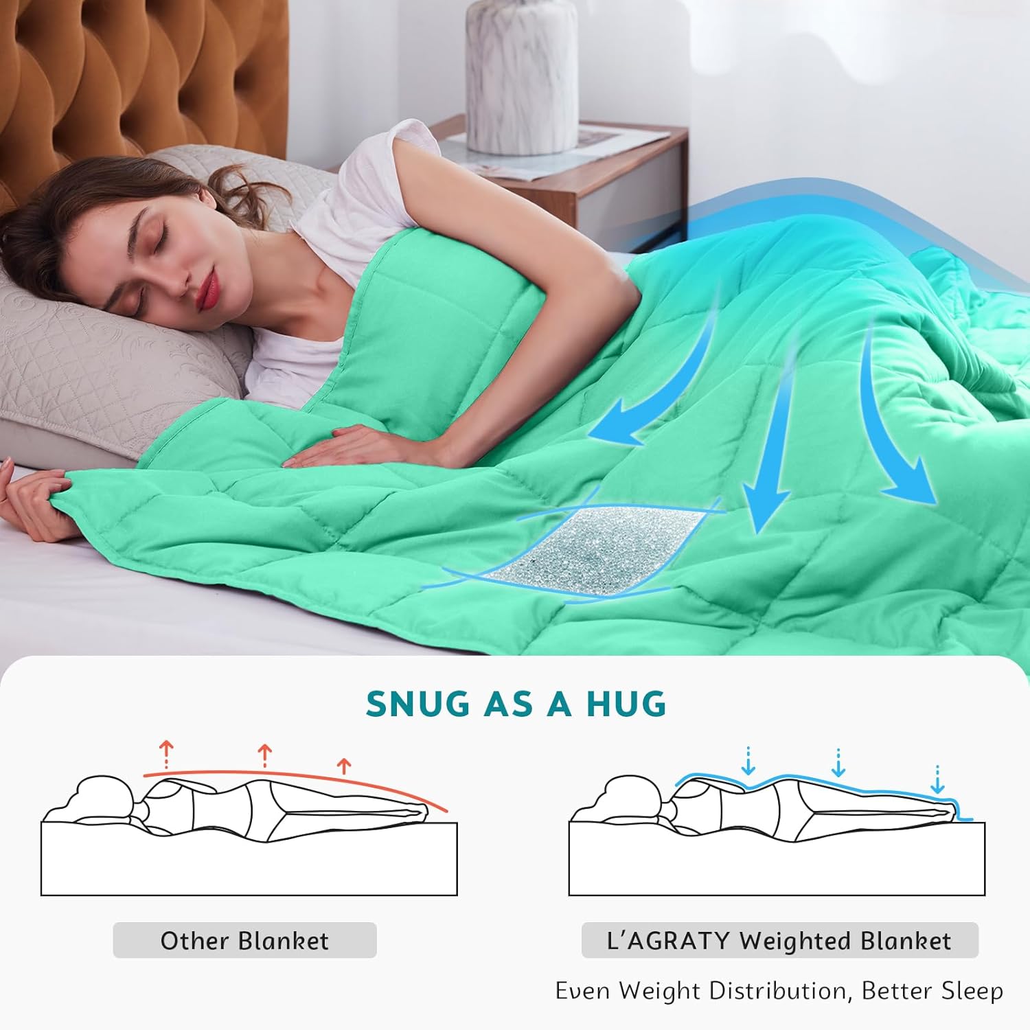 L'AGRATY Weighted Blanket - 60"x80" 15lbs Cooling Breathable Heavy Blanket Microfiber Material with Glass Beads Big Blanket for Adult All-Season Summer Fall Winter Soft Thick Comfort Blanket