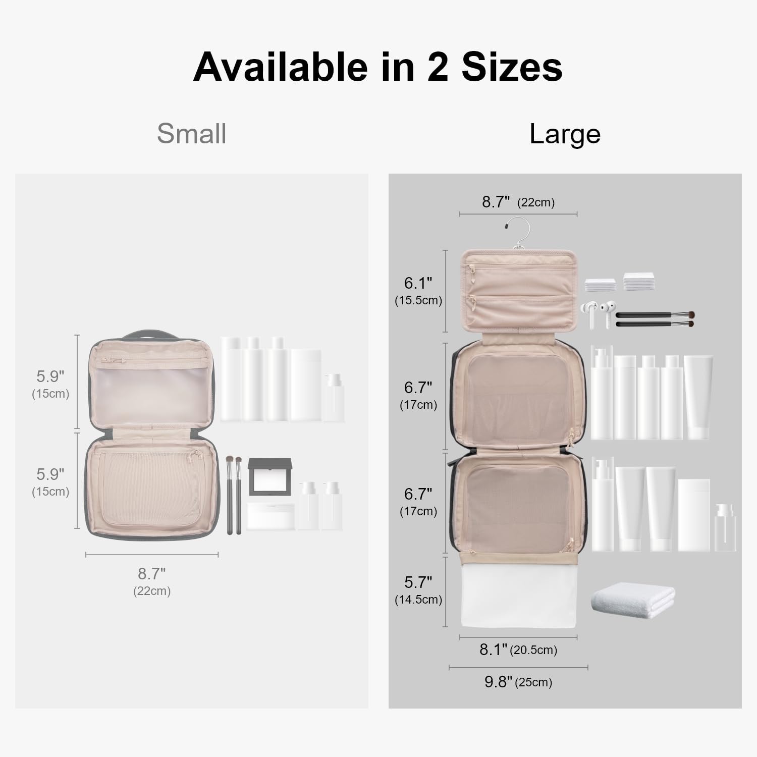 LEVEL8 Travel Toiletry Bag for Women Men, Travel Organizer Water Repellent, Makeup Organizer with Hang Hook for Travel Accessories, Large/Black