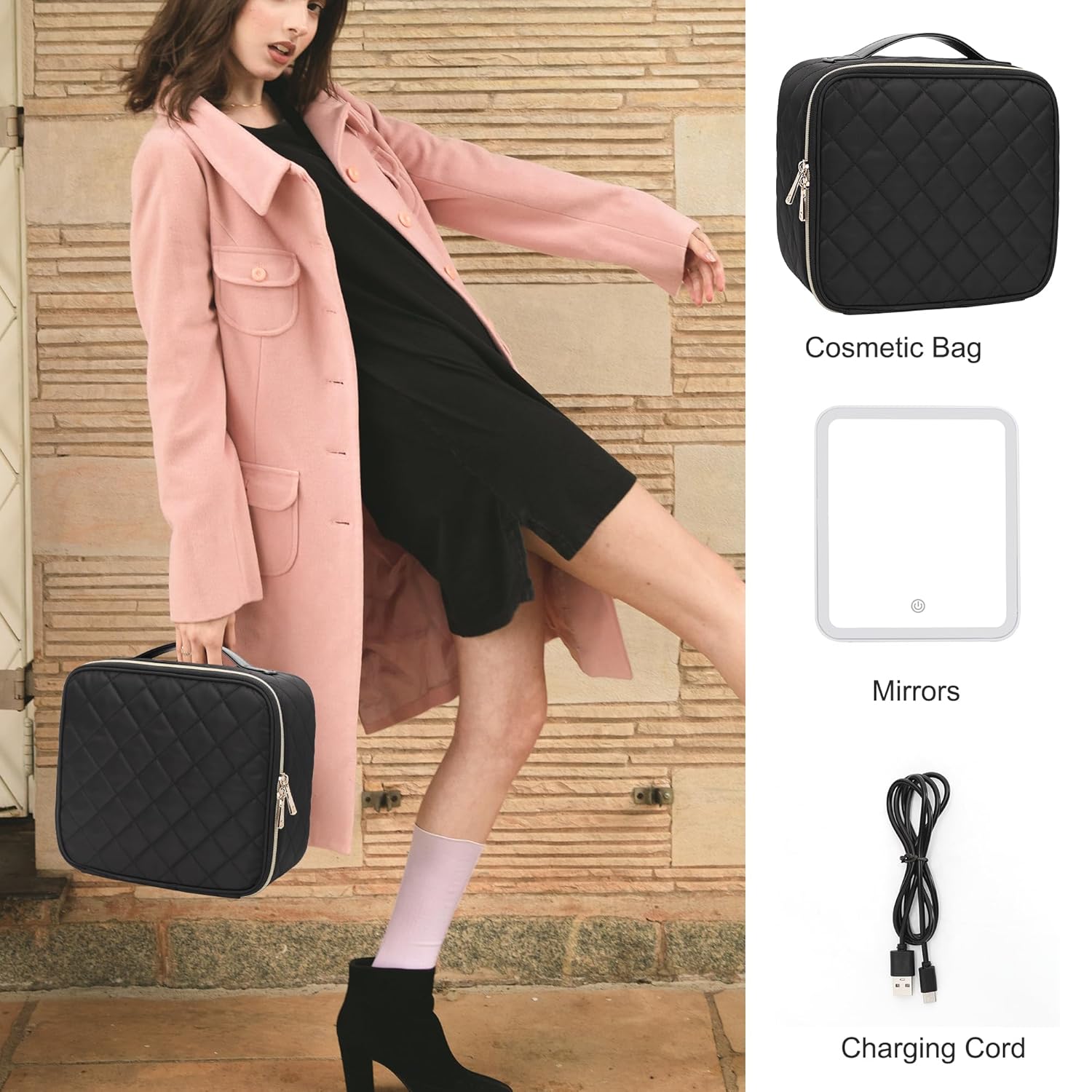 - 【Upgraded design makeup bag with led mirror】The travel makeup bag is made of sturdy and durable synthetic leather, which is waterproof and wearable, dustproof and easy to clean