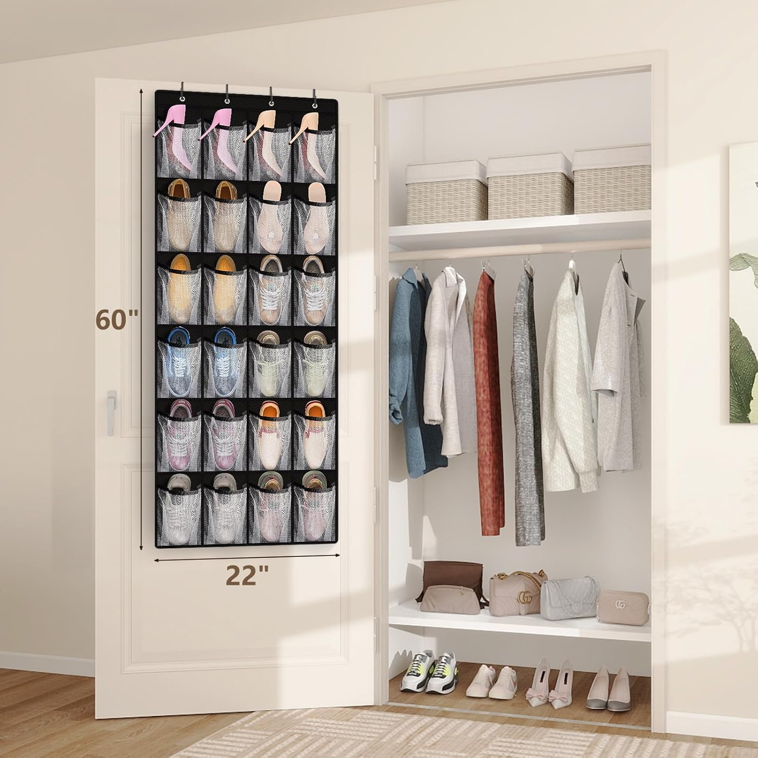 - Stay Well-Organized & Keep Space Tidy: Our 1 pack over-the-door shoe organizer has 24 pockets, storing up to 12 pairs of shoes to keep your home clutter-free. Each pair is stored separately for better protection, while breathable mesh pockets make shoes visible for quick and easy access. Perfect for sneakers, slippers, sandals, kids' shoes, and seasonal footwear!