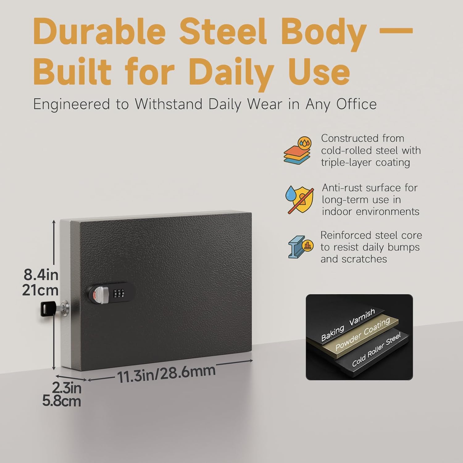- Well Made: The key box is made from 0.6mm cold-rolled steel, with an environmentally friendly anti-rust coating, ensuring safety and durability for years of reliable use.