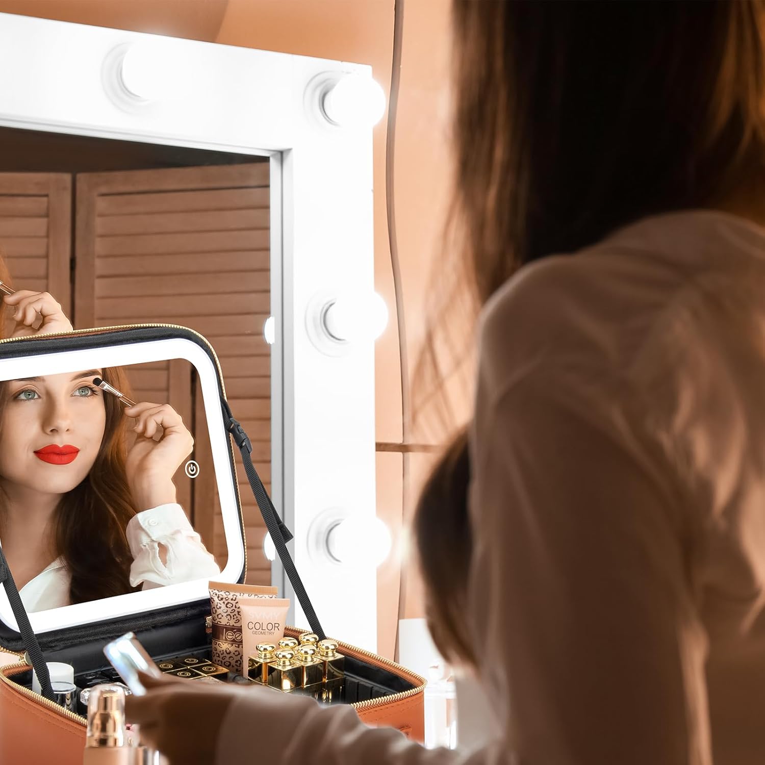 - 【Adjustable Light Mirror】Our makeup train box has three kinds of lights to switch freely, one key to switch the light mode, which can be adjusted to your satisfaction, and improve the clarity of your face with the adjustable mirror.