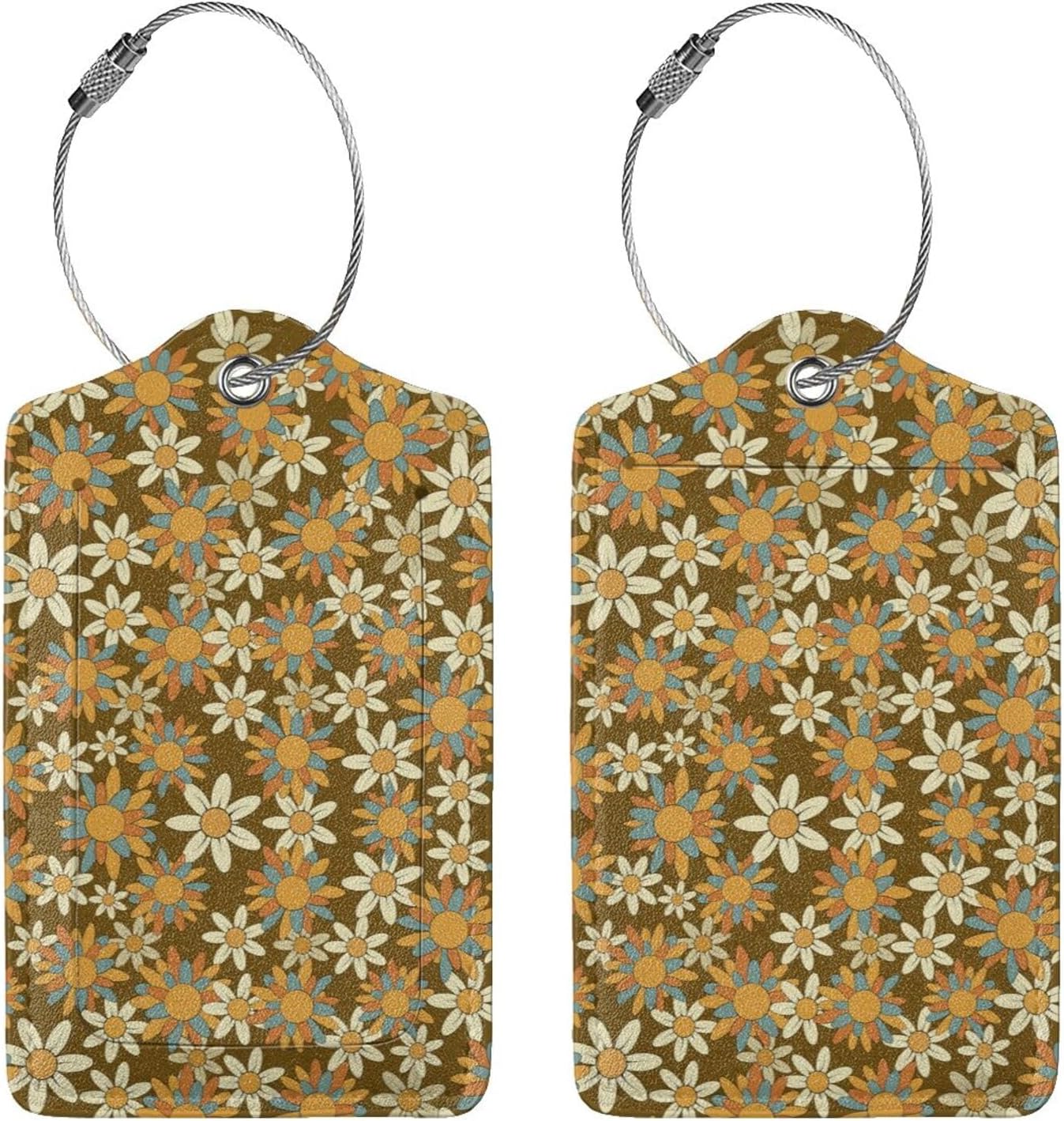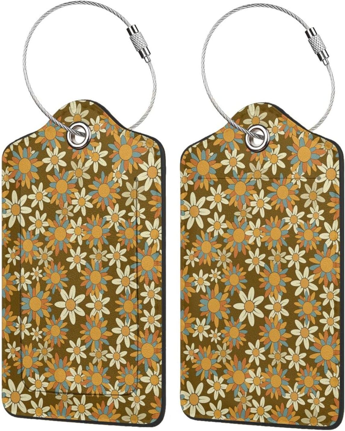 Flowers Leather Luggage Tag with Stainless Steel Ring, Fun Name Id Card Cover Travel Bag Tag Set, Suitable for Travel Bag Luggage Women Men 1 PCS