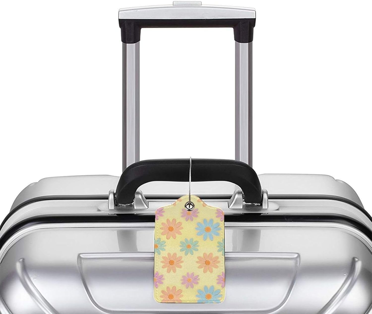 Flowers Leather Luggage Tag with Stainless Steel Ring, Fun Name Id Card Cover Travel Bag Tag Set, Suitable for Travel Bag Luggage Women Men 2 PCS