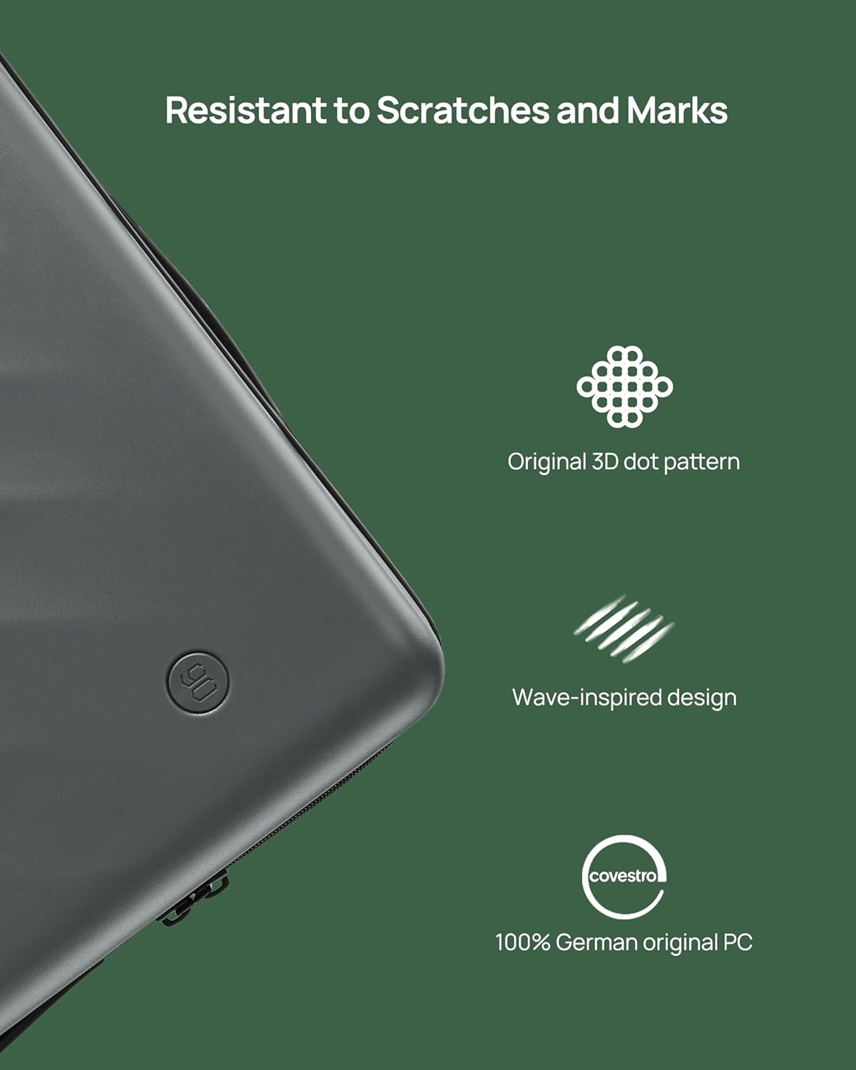 - 【Ultra-Tough Polycarbonate Shell】Constructed from 100% German Covestro polycarbonate, the scratch-resistant Micro-Diamond crush-proof exterior undergoes rigorous lab testing to withstand extreme impacts, rough handling, and accidental drops during air travel while maintaining its sleek appearance.