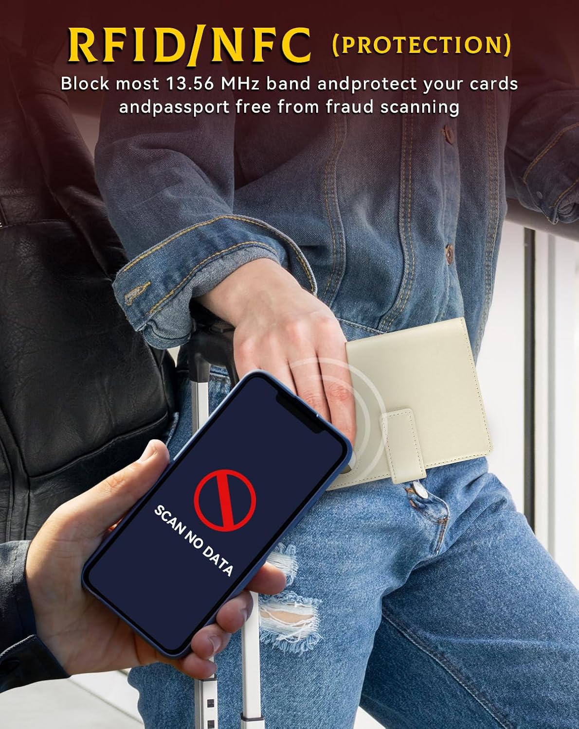 - Convenient & Compact: Ideal for international travel, our versatile wallet includes an extra slot compartment for bills and other necessities. It securely locks shut with powerful magnets, ensuring everything inside remains safe and organized.