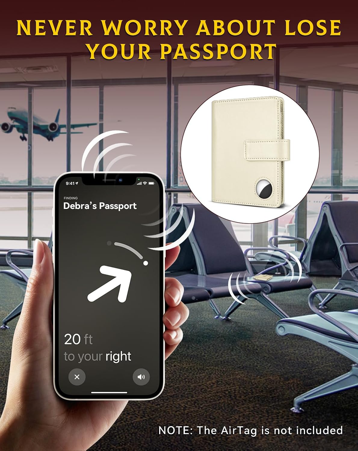 - Keep Track of the Essentials: The Mokzer Passport Holder comes with a secure holder for Apple AirTag, making it fully trackable when Trackable chip is installed (AirTags not included). Simply use the 'Find My' application on your Apple device to locate your wallet.