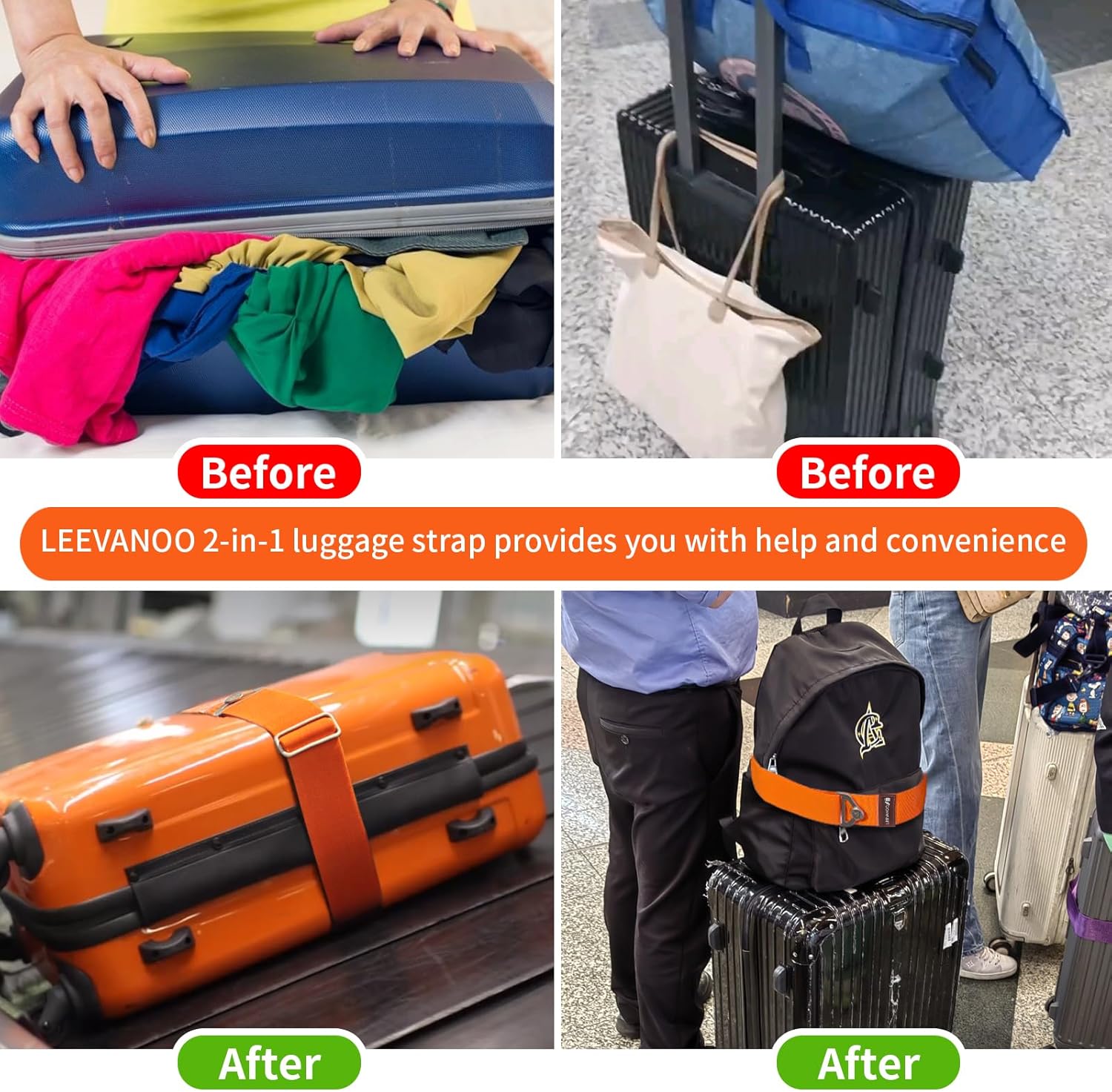 - 【Gift and Convenience】This luggage strap adds a bag to your suitcase, it is a very practical travel necessity that will bring a lot of convenience to traveling.LEEVANOO 2-in-1 Luggage Strap provides you with help and convenience, and it can also be used as a gift for your family and friends who love traveling.