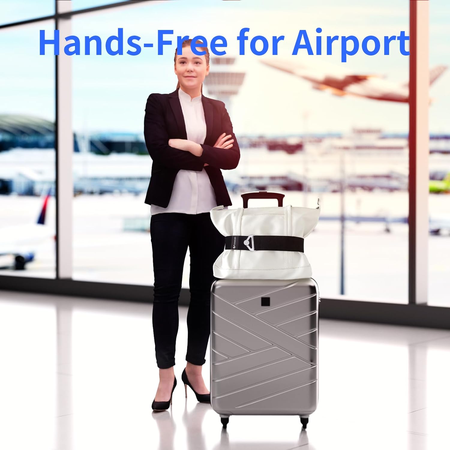 - 【Travel hands-free】 Bag Carry Handle 2-in-1 Travel Strap for securing your suitcase or carry-on baggage to the handle of your checked baggage allows you to secure a second bag, jacket, suitcase or case to your carry-on or wheeled baggage, the suitcase belt strap is adjustable and expandable to fit most baggage handles. This allows you to easily go through the airport hands-free and makes traveling a breeze.
